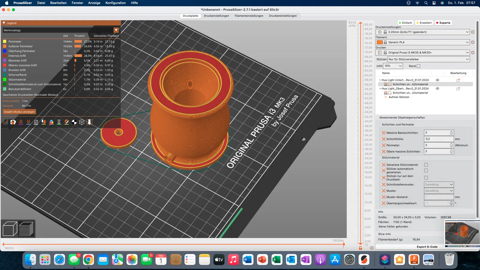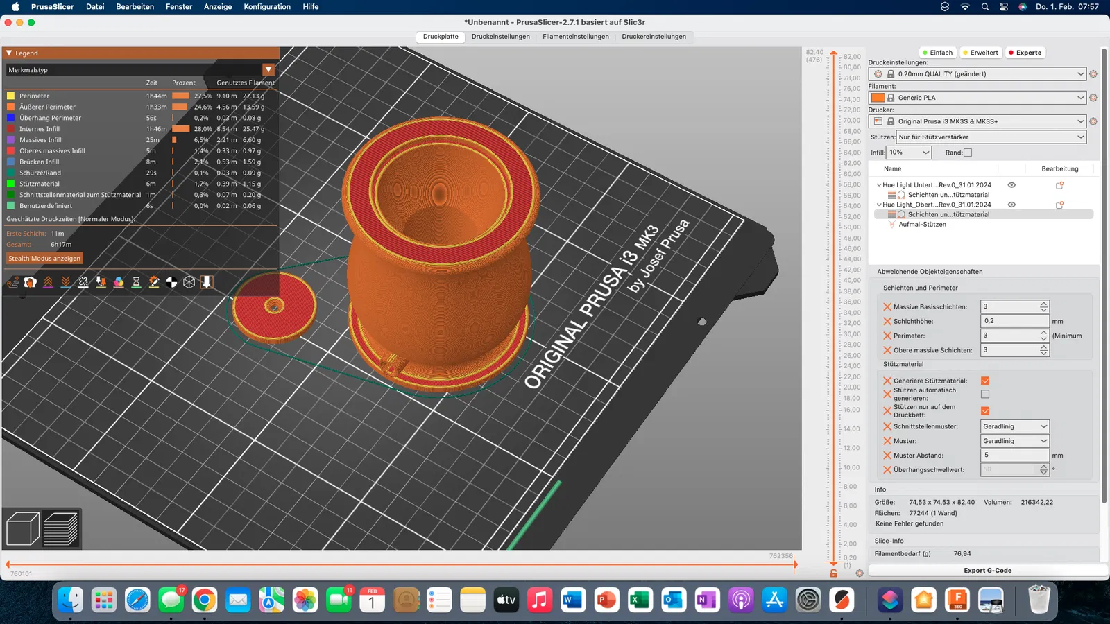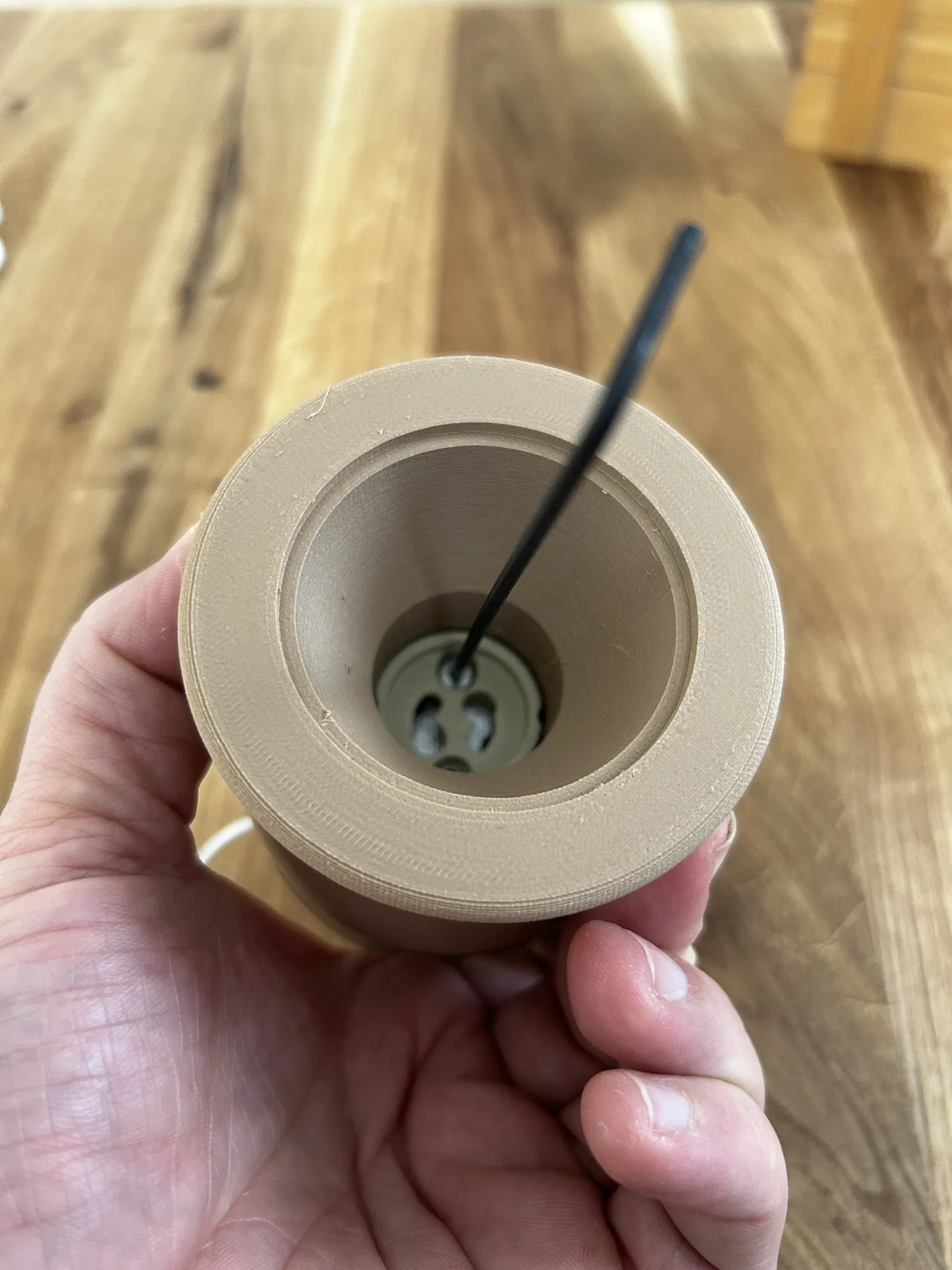 Chất liệu trong ví dụ của tôi: PLA với 20% gỗ (ngoài mùi gỗ nhẹ thì không có gì khác)