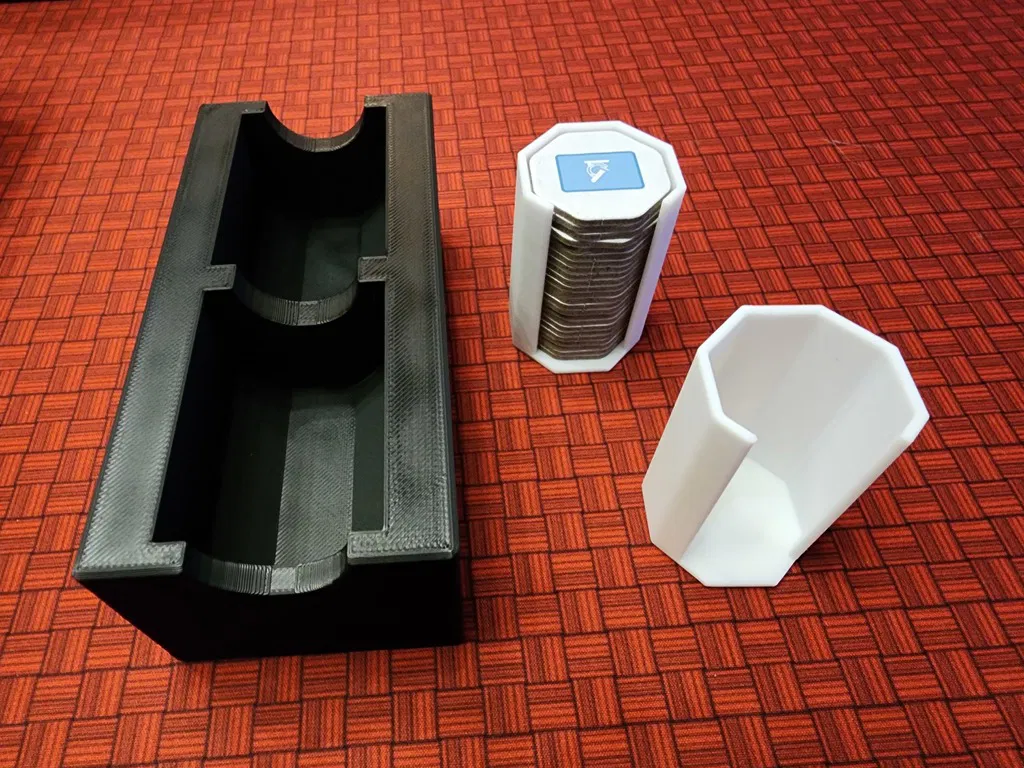 In 1 bản "tfe_supply_tiles_spacer_remix.stl" - Chứa các ô cung ứng (supply tiles) theo dạng tháp có thể tháo rời. Có chỗ cho tháp đang hoạt động và tháp đã bỏ.