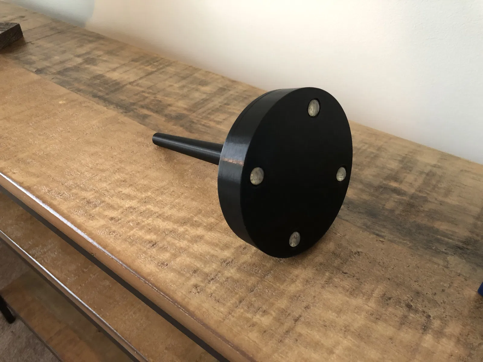 Tui thiết kế một phiên bản giá đỡ cuộn len xoay bằng công nghệ in 3D. Trục quay được giữ chặt bởi một trục then hoa nhỏ được ép vào vòng bi 608.
