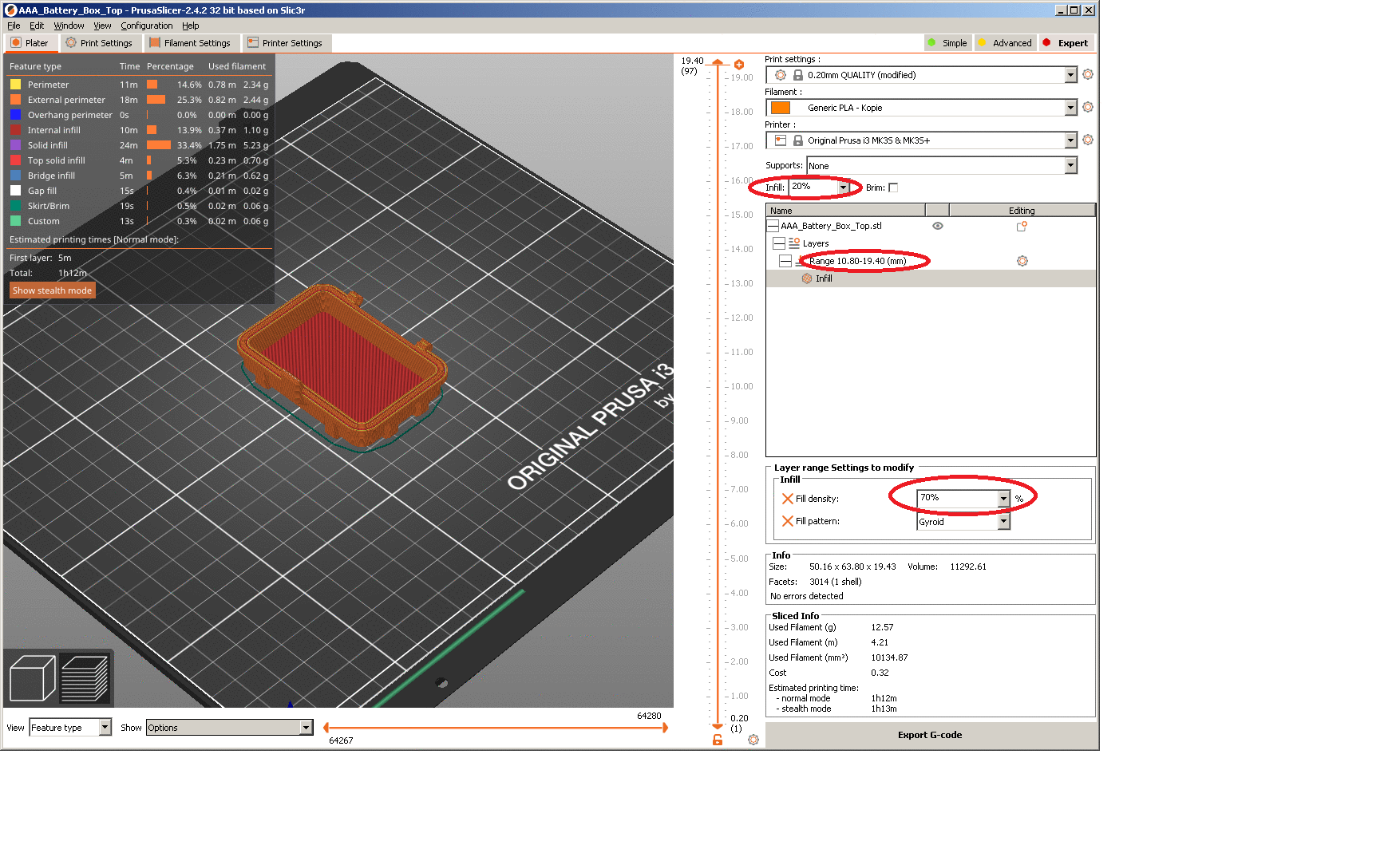 Hộp này có thể chứa an toàn tới 15 viên pin AAA. Tui đã thay đổi mật độ infill cho các lớp trên để kẹp được bền hơn đó bà con ơi!