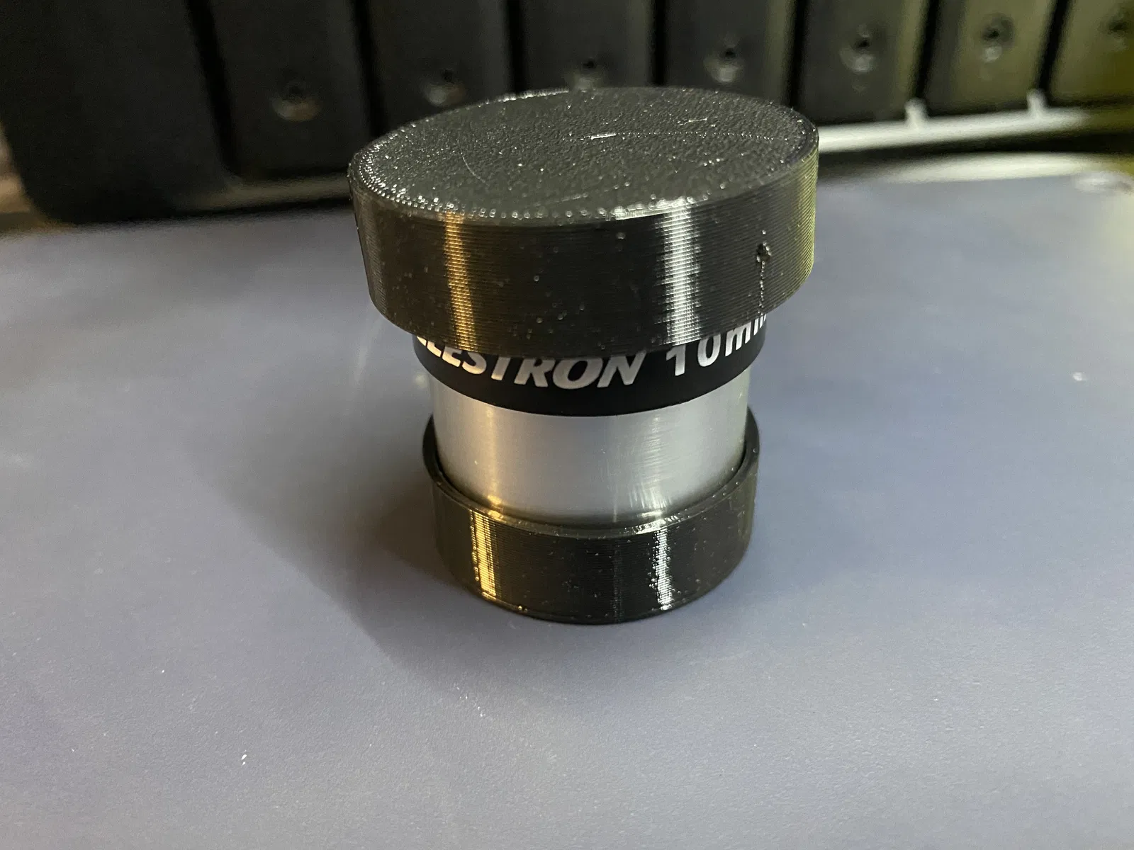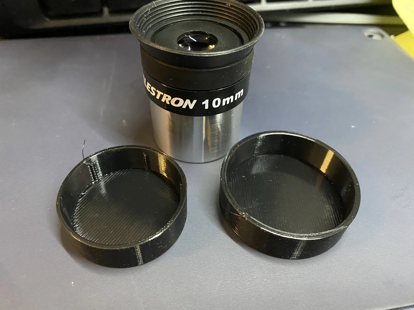 Đây là nắp ống kính mềm (làm bằng TPU) cho ống kính Celestron. Nắp trên bám vào ron cao su, nắp dưới có gân bám nhẹ vào ống nhôm, không bịt kín hơi để tránh ẩm.