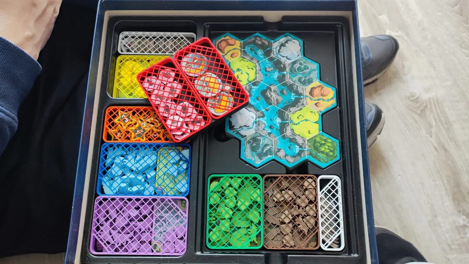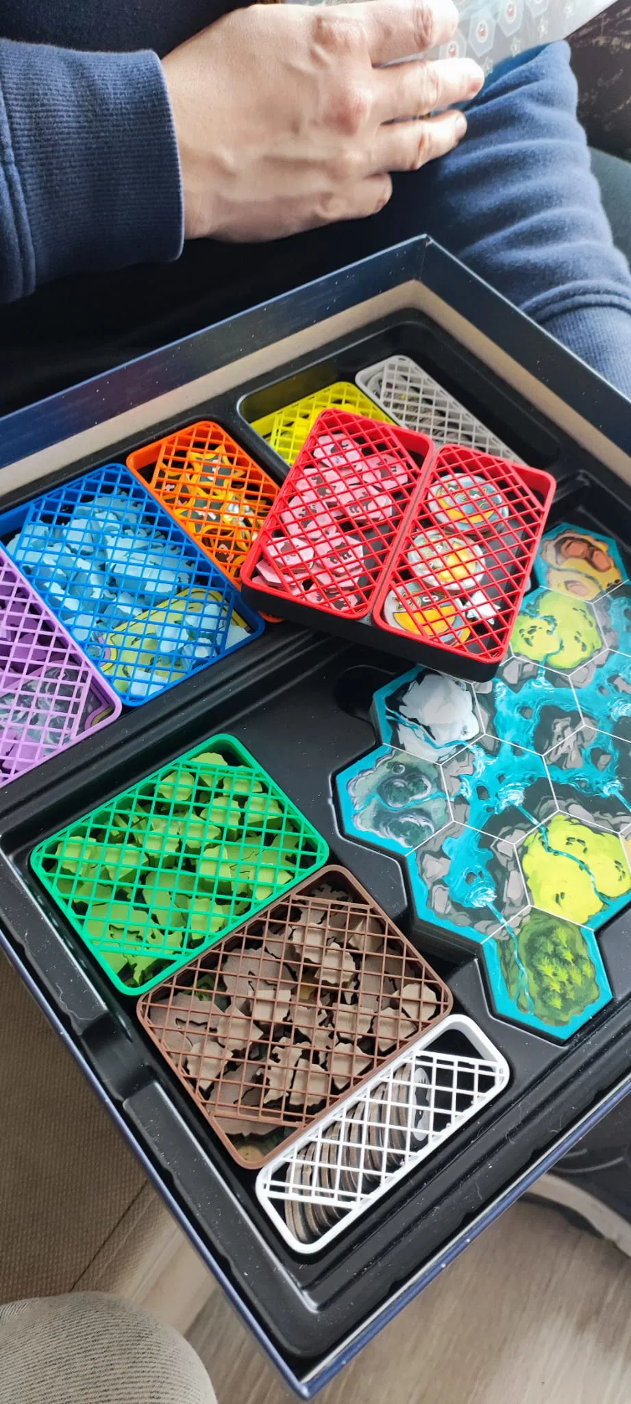 Các khay có thể được đặt vào insert gốc của game để tiết kiệm tối đa nhựa. Có các khay cho từng loại linh kiện để bạn có thể sắp xếp mọi thứ gọn gàng.