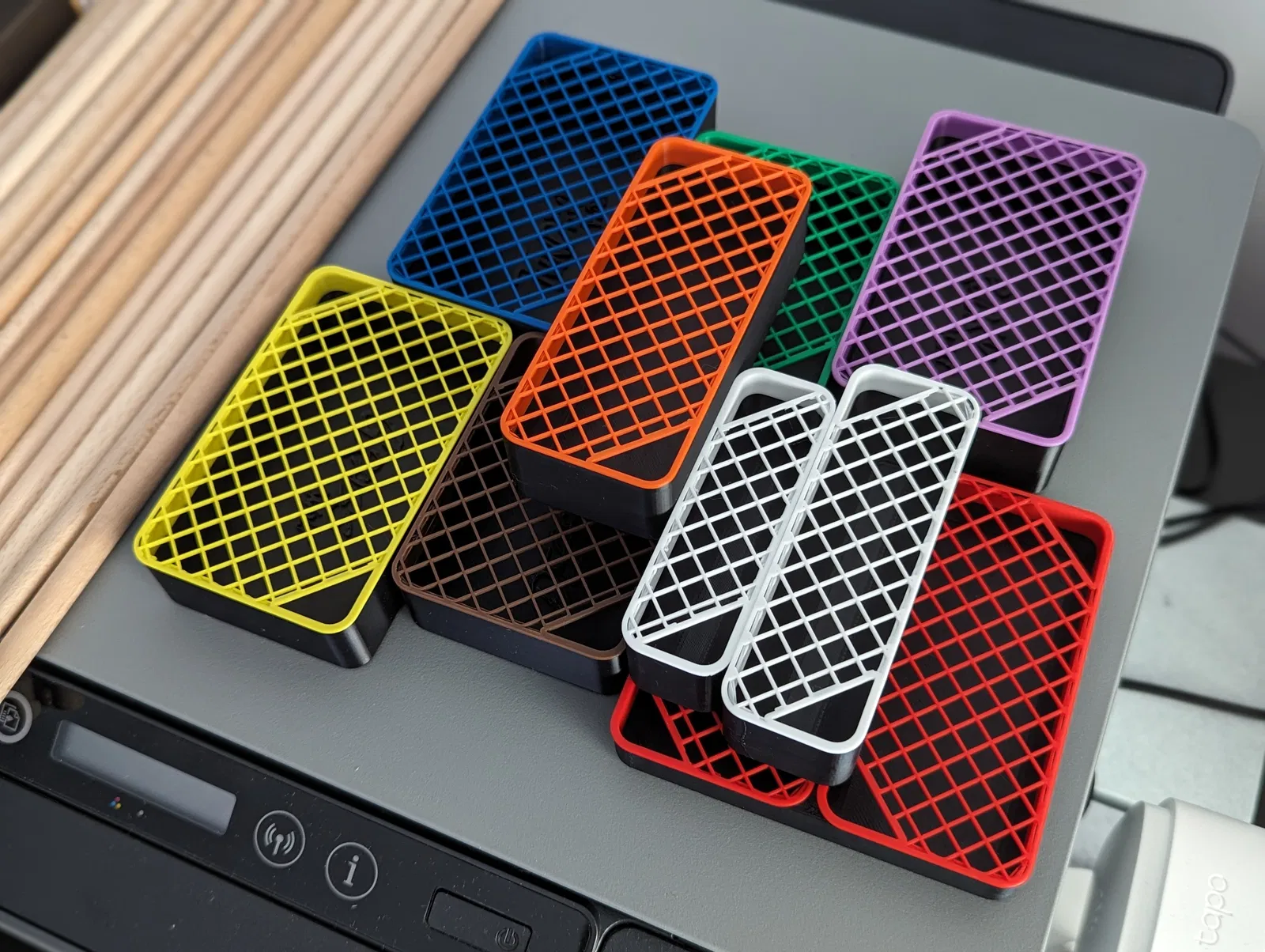 Tổ chức các bộ phận của board game The Wolves một cách ngăn nắp. Sử dụng insert gốc của trò chơi, các khay này được thiết kế để sắp xếp từng loại linh kiện, giảm thiểu sử dụng nhựa. Có thể tạo hoa văn trên nắp bằng cách in không có lớp trên/dưới.