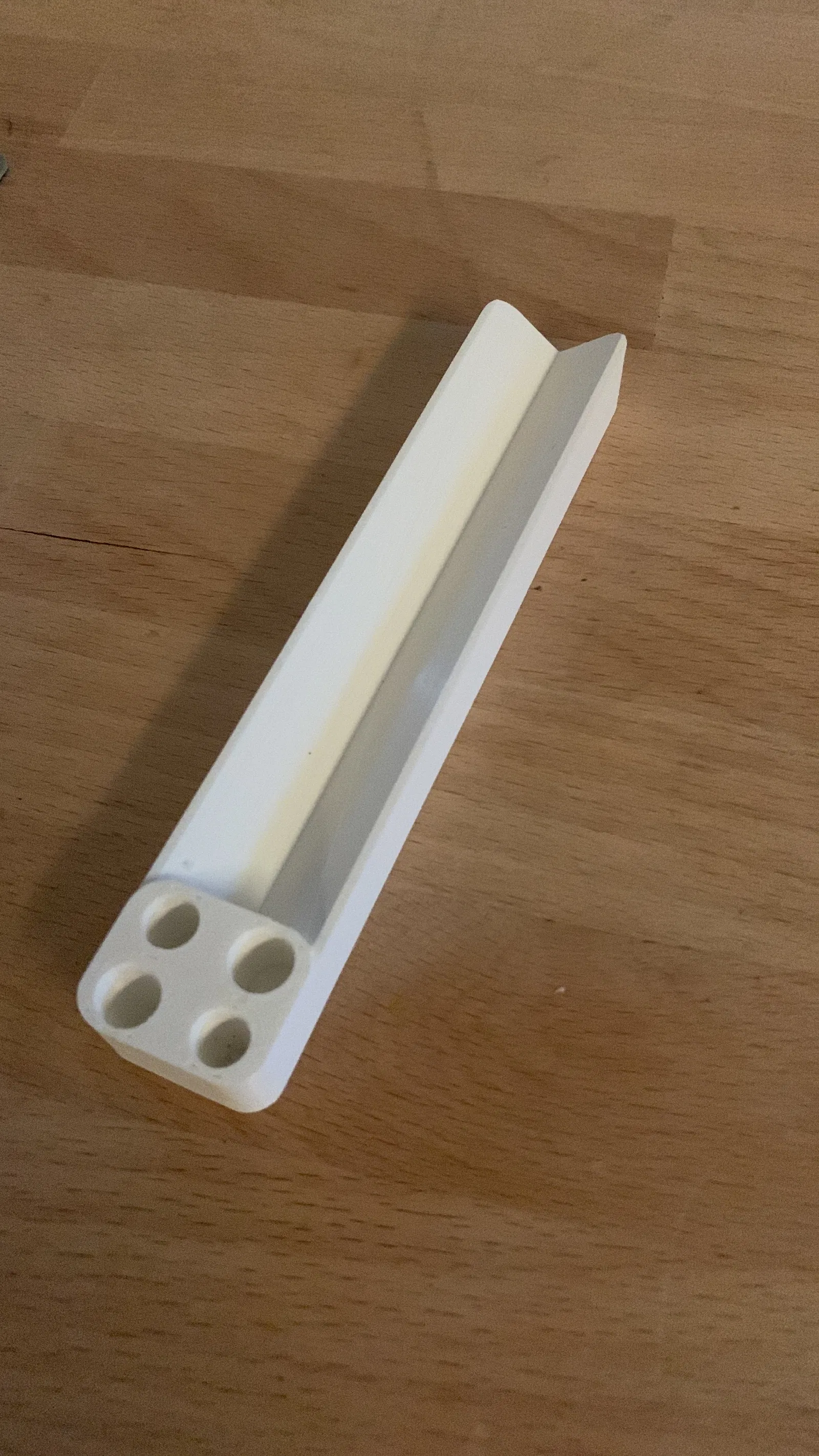Một dụng cụ hỗ trợ hình chữ V đơn giản để giữ mọi thứ vào đúng vị trí. Nó nhỏ gọn hơn khay, giúp giữ đồ vật đúng chỗ và có thể dán cố định vào khay/hộp có sẵn.
