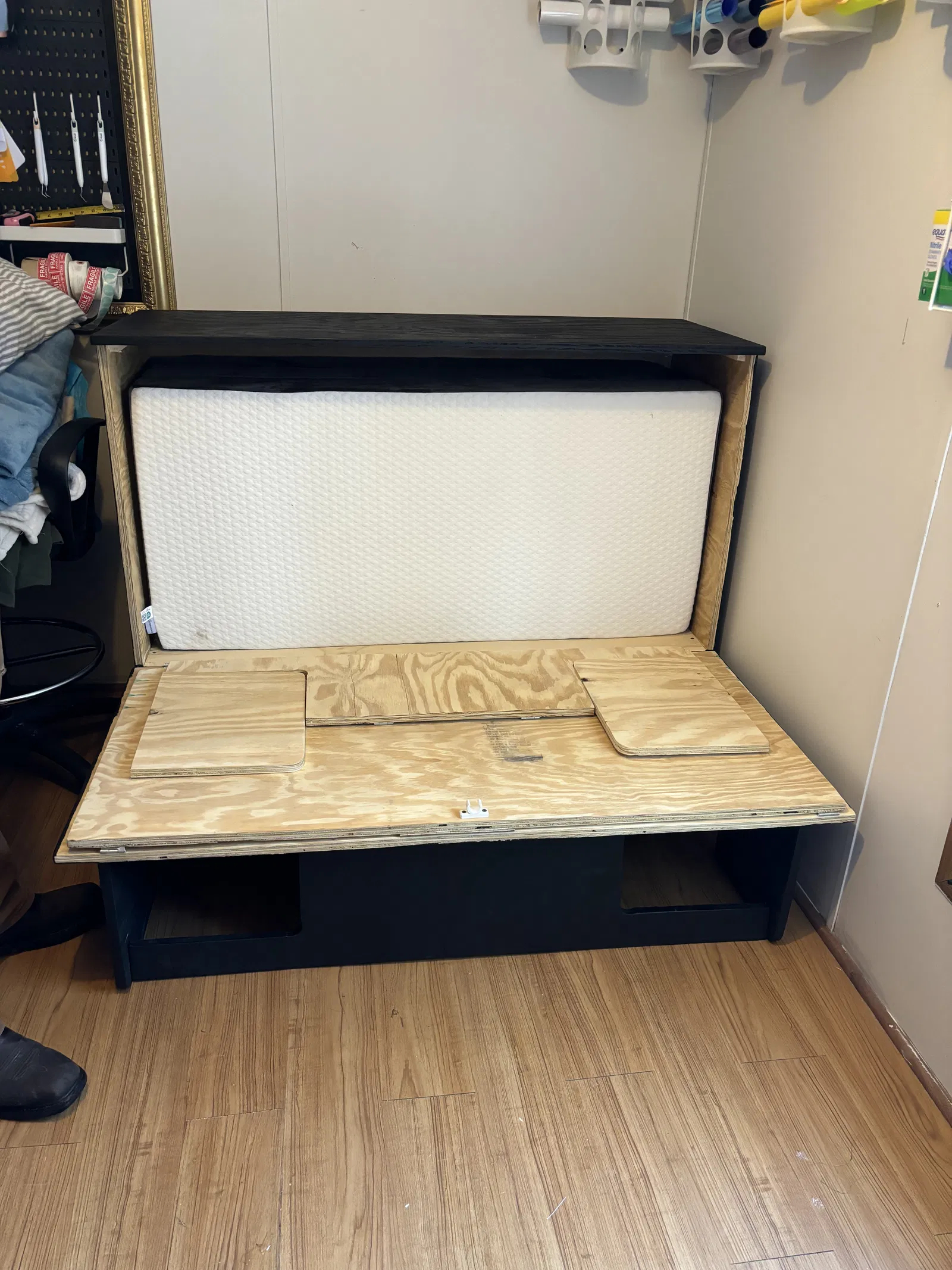 Tui chế lại cái chốt cửa cho nó cứng cáp hơn để có thể giữ được mấy tấm ván ép dày ¾". Tui chỉ làm lại phần lẫy thôi, còn cái chốt thì xài của tác giả gốc. Đảm bảo chắc chắn, xài bền.
