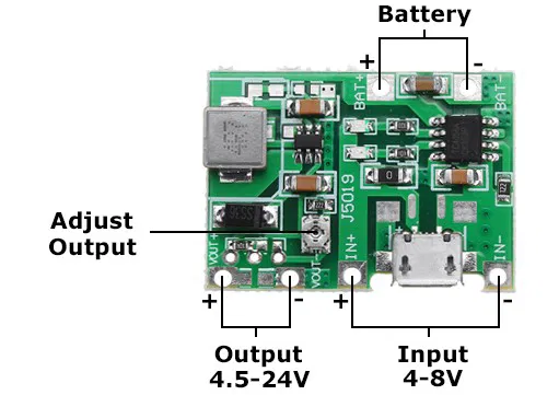 - Bộ chuyển đổi J5019 DC DC Step Up và bộ sạc Li-ion