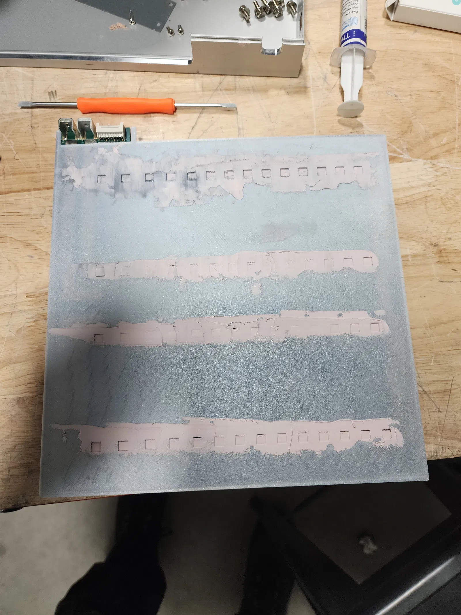 Cái này là do tui tự làm ra để dễ dàng trét keo tản nhiệt lại cho con Ice River KS3 của tui, hầu cải thiện nhiệt độ vì keo tản nhiệt zin của nhà sản xuất làm chưa tốt lắm. Chỉ cần đặt cái mask này lên bo mạch, rồi dùng cái bay trét keo vào các lỗ. Sau đó là xong, có thể lắp lại tản nhiệt và bắt đầu đào.