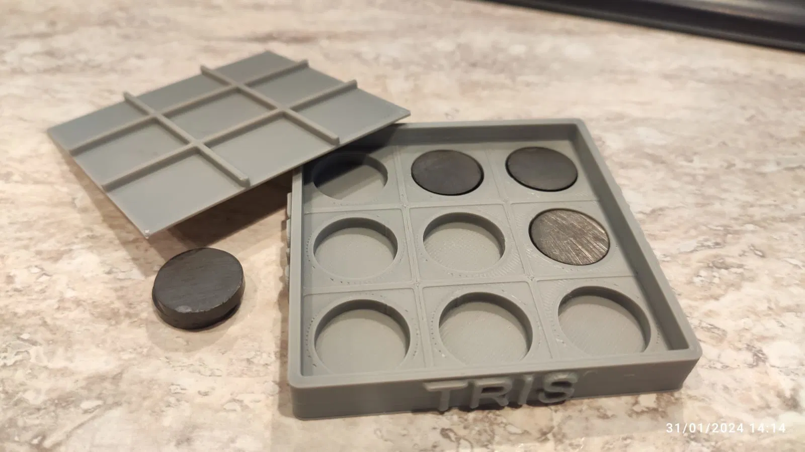 Phiên bản nam châm cực hay của trò chơi TIC-TAC-TOE cổ điển. Cờ nam châm với bố cục cho nam châm đường kính 16mm, cao 3mm. Cực kỳ vui, dễ mang đi, chơi được mọi nơi, kể cả khi đang di chuyển hay mất thăng bằng.