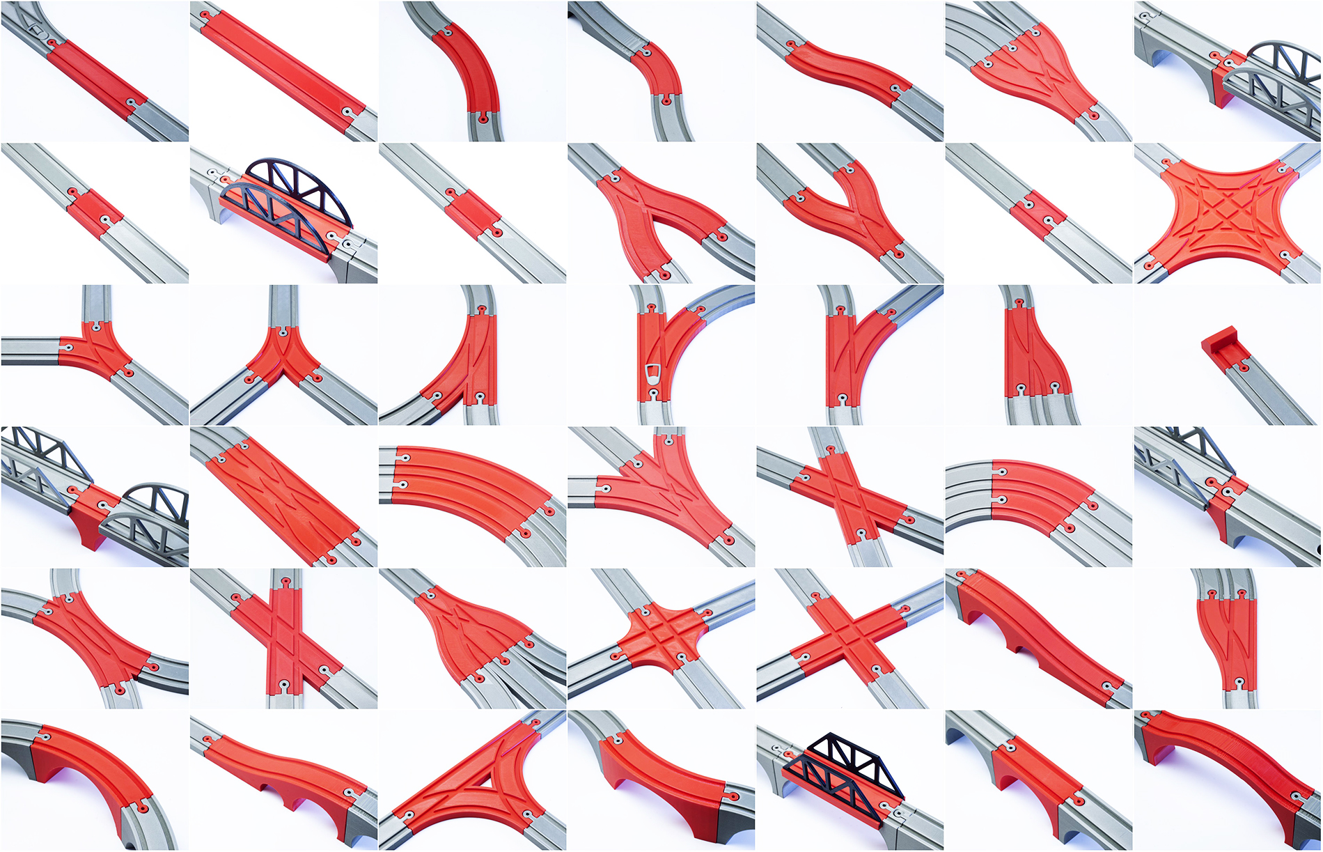 Đường ray cong ngắn có hai chiều, tương thích với ray gỗ BRIO và IKEA. Có thể in mà không cần hỗ trợ. Đây là một phần của bộ đường ray mở rộng bao gồm đường thẳng, đường cong, đường ray chuyển hướng và cầu.