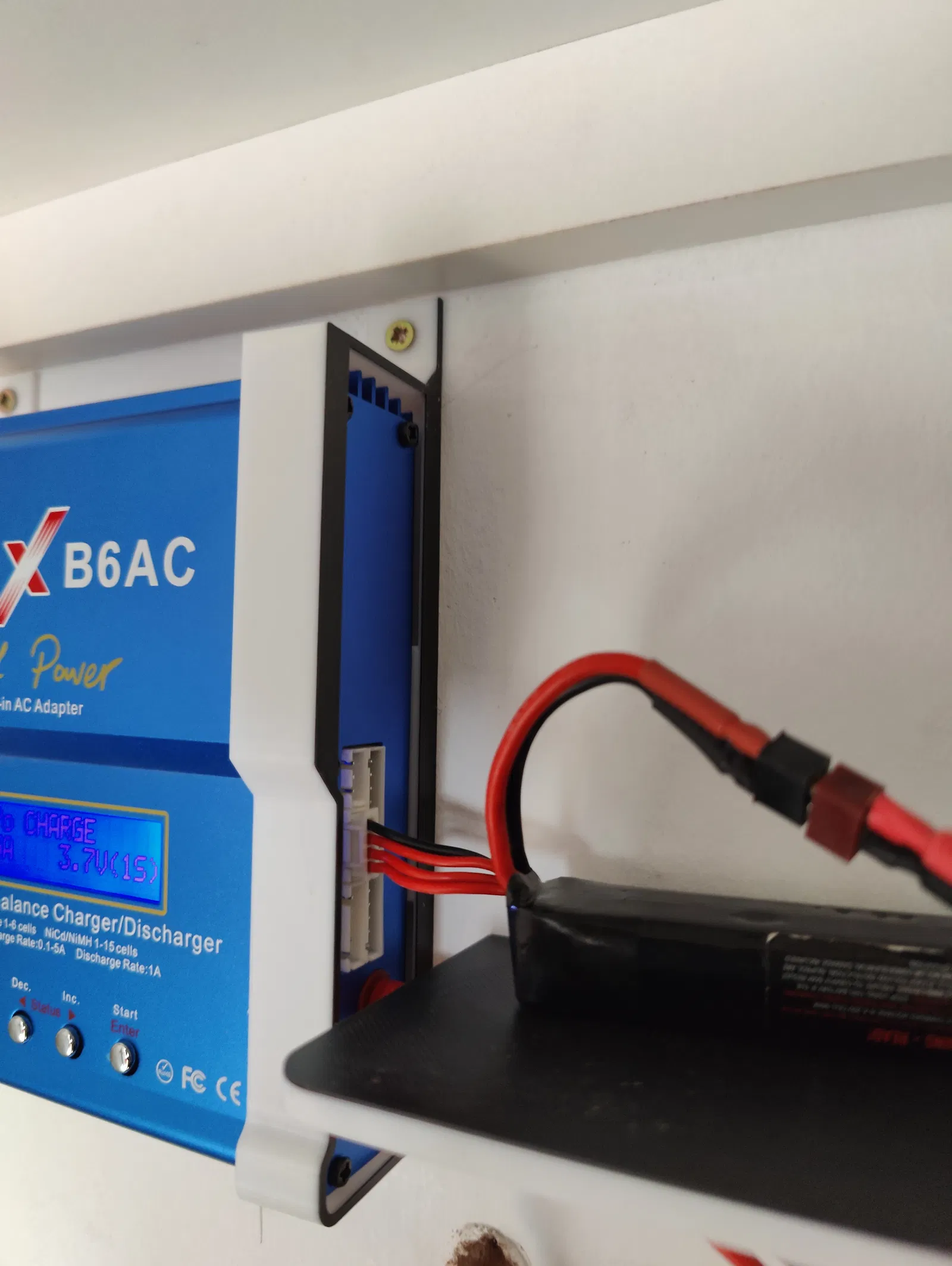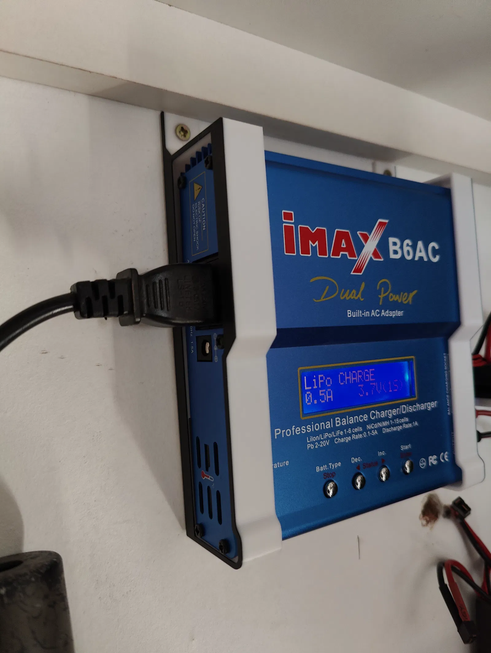 Bộ giá treo tường dành cho sạc IMAX B6AC. Giúp tiết kiệm không gian bằng cách gắn sạc lên tường. File .3mf tải về bao gồm cả hai bracket.