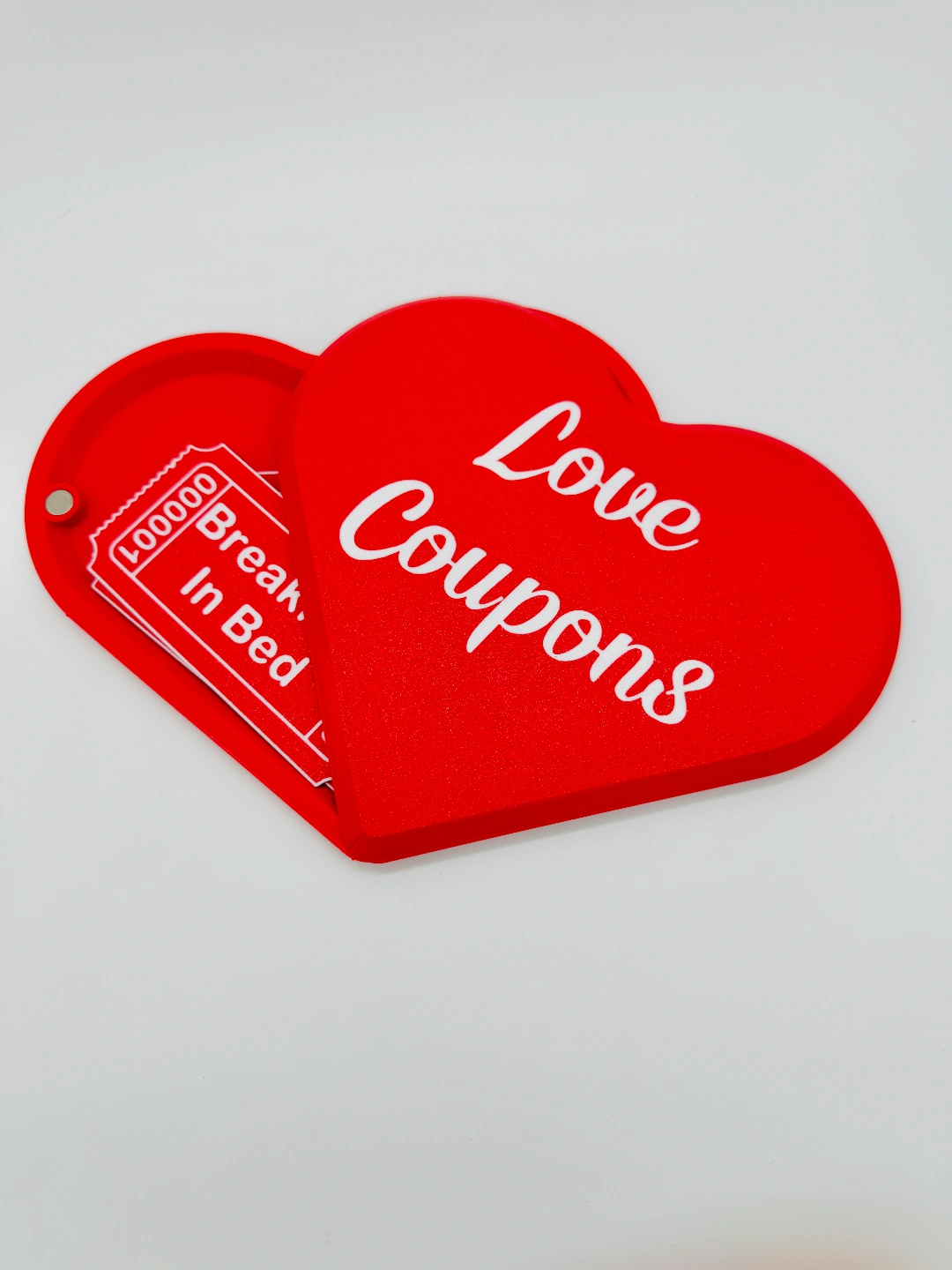 Chiếc hộp trái tim nhỏ xinh có nam châm, in nhanh chóng, lý tưởng để đựng vé trong bộ Love Coupons. Mẫu có thể in full bàn của A1 Mini, dùng nam châm 8x2. Có các phiên bản lớn hơn sắp ra mắt.