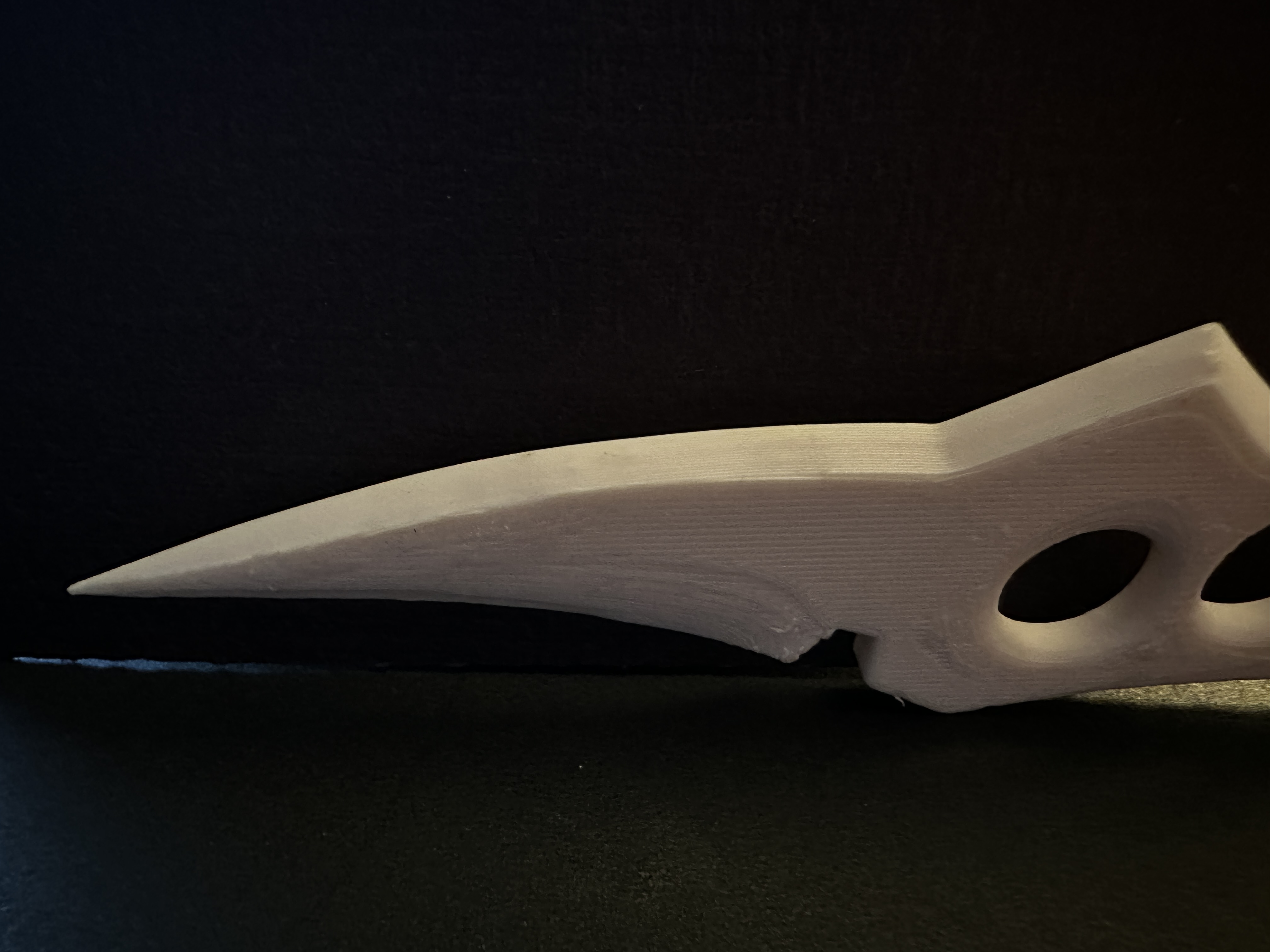 (TUY NHIÊN HÃY LẤY CHICAGO, IL LÀM VÍ DỤ - GIỚI HẠN LƯỠI DAO 2.5IN KHI MANG NGANG VÀ PHẢI ĐỦ 18 TUỔI ĐỂ SỞ HỮU DAO - TRONG KHI ĐÂY CÓ THỂ LÀ MỘT VẬT PHẨM TRANG TRÍ BỞI TẤT CẢ CÁC TIÊU CHUẨN TRANH LUẬN, VIỆC SỬ DỤNG SAI MỤC ĐÍCH NGAY CẢ MỘT VẬT PHẨM TRANG TRÍ CŨNG CÓ THỂ DẪN ĐẾN VIỆC BỊ TRUY TỐ CÁ NHÂN TÙY THUỘC VÀO BẢN CHẤT CỦA NÓ - vì lưỡi dao ở đây không gì khác ngoài PLA mỏng thì có thể tranh luận rằng nó ít nguy hiểm hơn tua vít kim loại - tuy nhiên đừng coi đây là lời khuyên pháp lý.