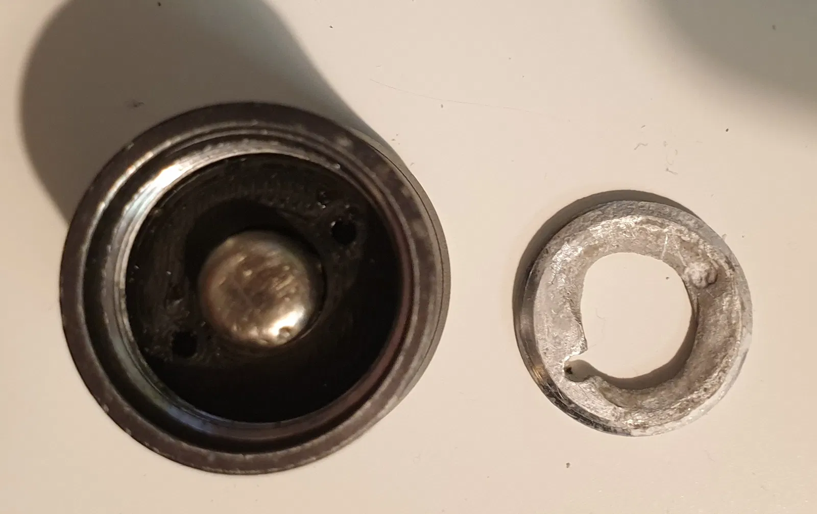Mấy cục pin trong cây đèn pin NEBO của tui nó bị chảy nước, ăn mòn cái miếng chèn mỏng dính ở dưới đáy giữ cái lò xo với cái chân tiếp xúc pin á, nên tui mới tự vẽ lại với in ra cái này để thay thế nè.