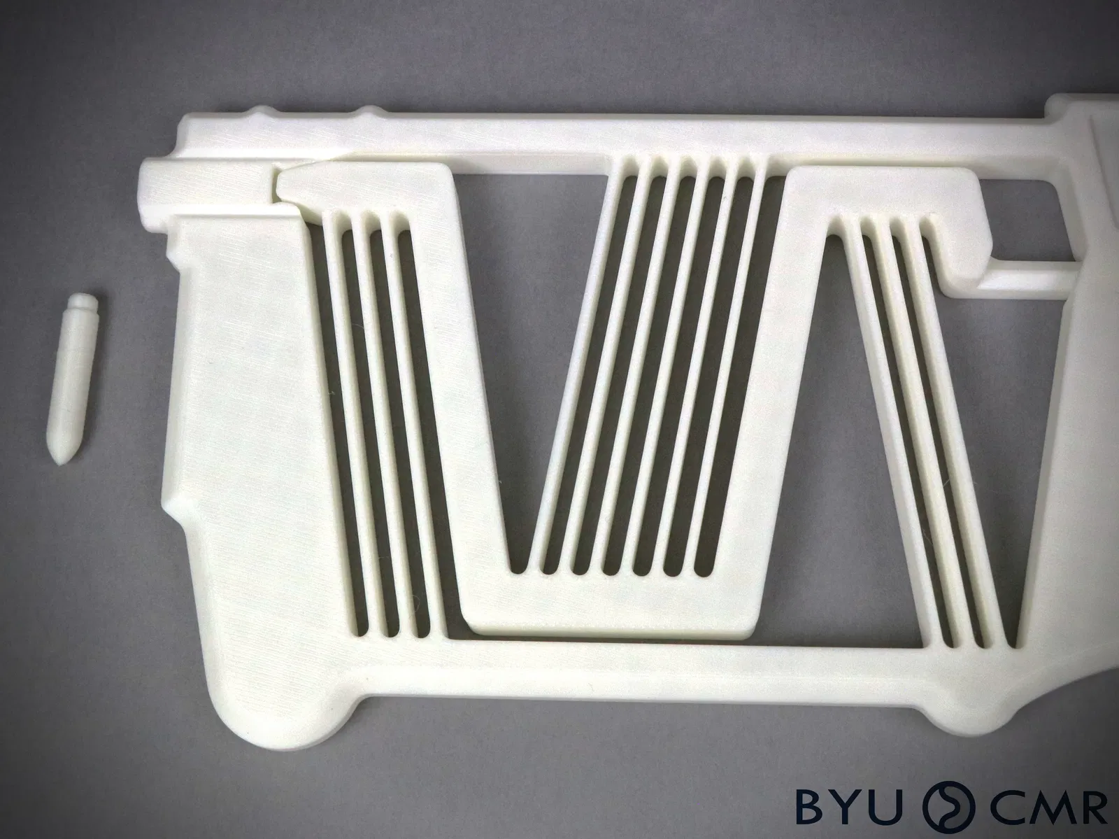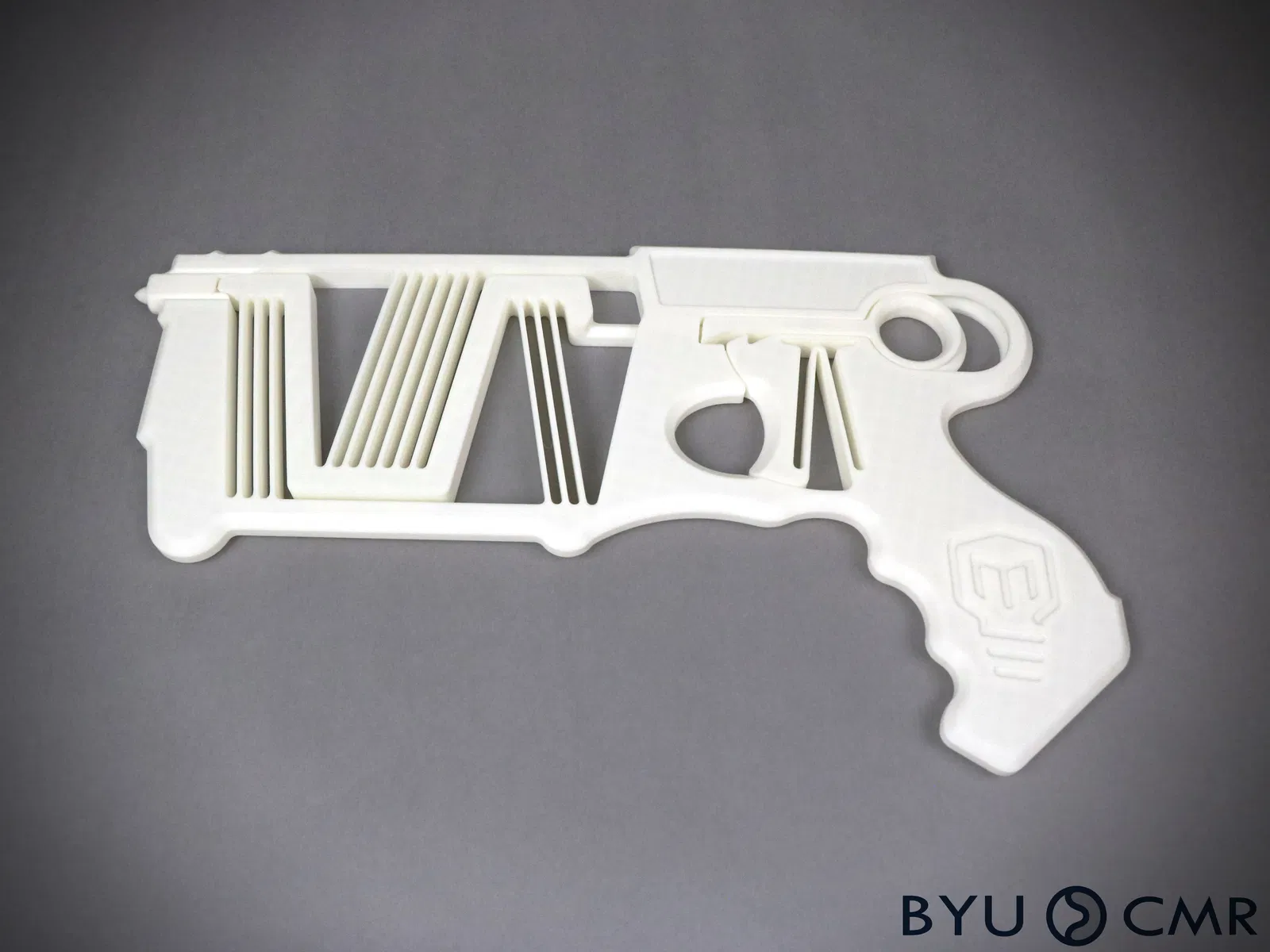 Mặc dù in 3D tiện lợi, nhưng các vật liệu cơ bản có sẵn không lý tưởng cho các cơ chế tuân thủ hoặc lưu trữ một lượng lớn năng lượng trong các bộ phận linh hoạt, như khẩu blaster tuân thủ này. Chúng tôi phải chuyển sang các vật liệu khác để có hiệu suất tối ưu hơn.