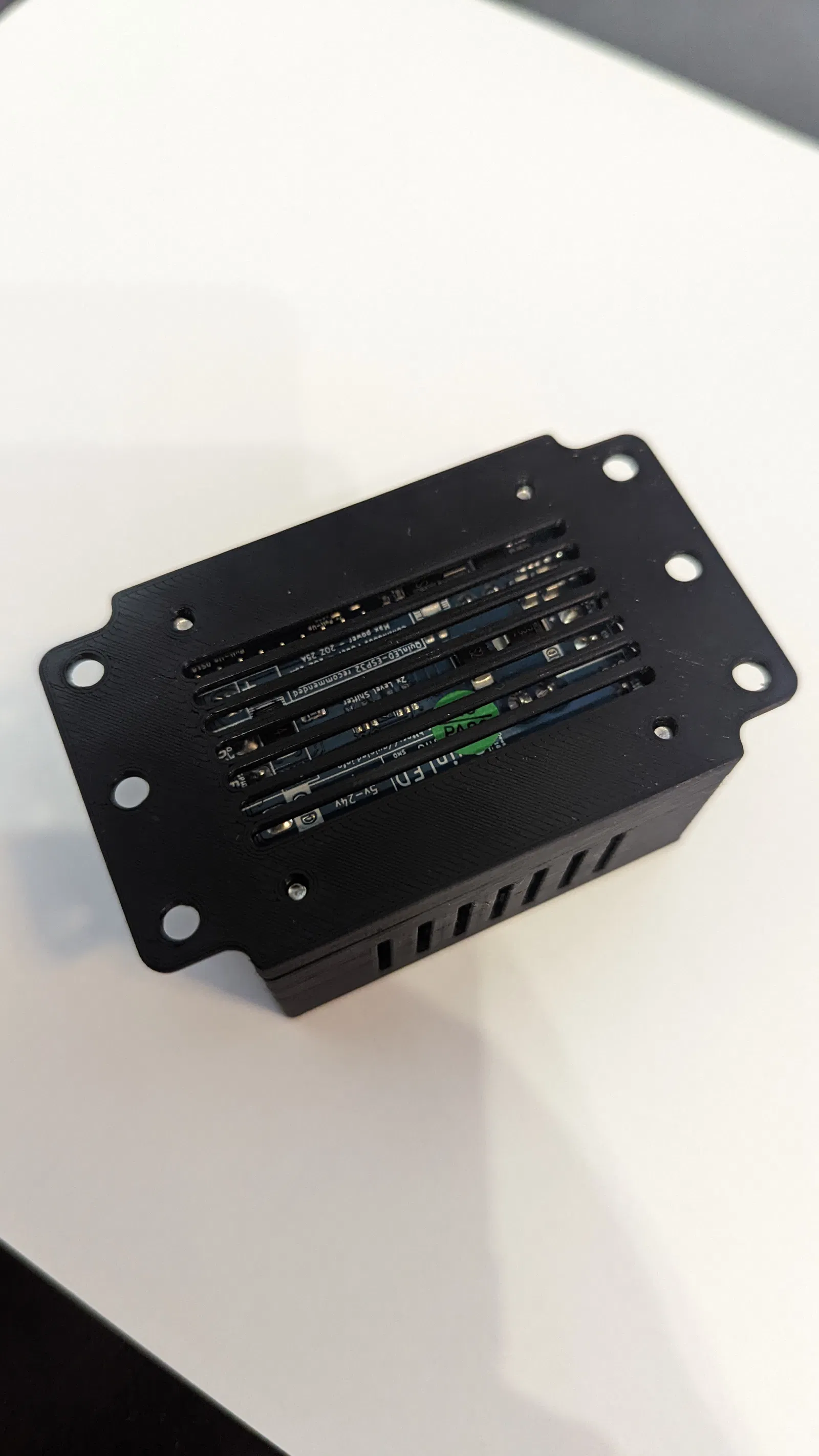 Đây là bản remix của hộp đựng QuinLED Dig Uno v3.1, với nắp được thiết kế lại để chứa ăng-ten và thêm các khe thông gió. Hộp này sử dụng ốc vít M2.5x5mm để cố định bo mạch, đảm bảo sự chắc chắn.