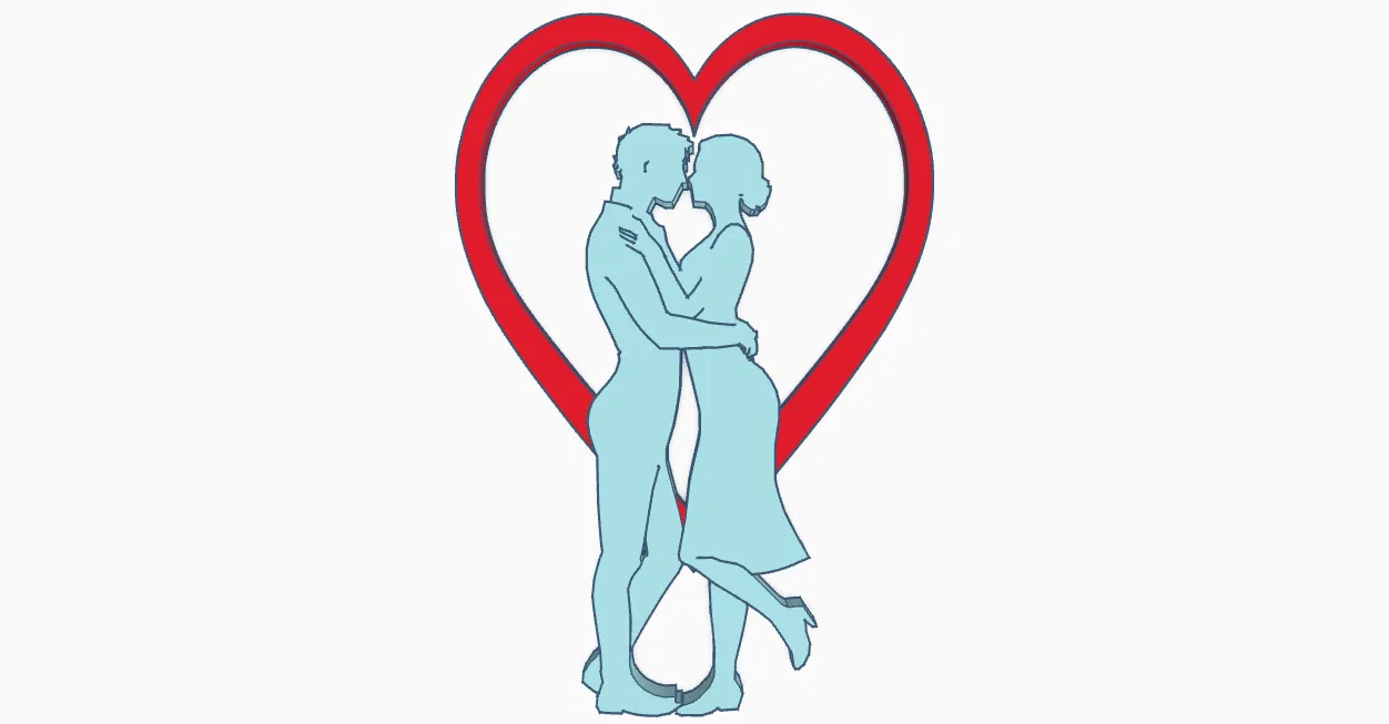 Mô hình 3D cặp đôi đang trao nhau nụ hôn nồng cháy trước một khung hình trái tim lãng mạn. Hoàn hảo cho dịp Valentine hoặc để thể hiện tình yêu.