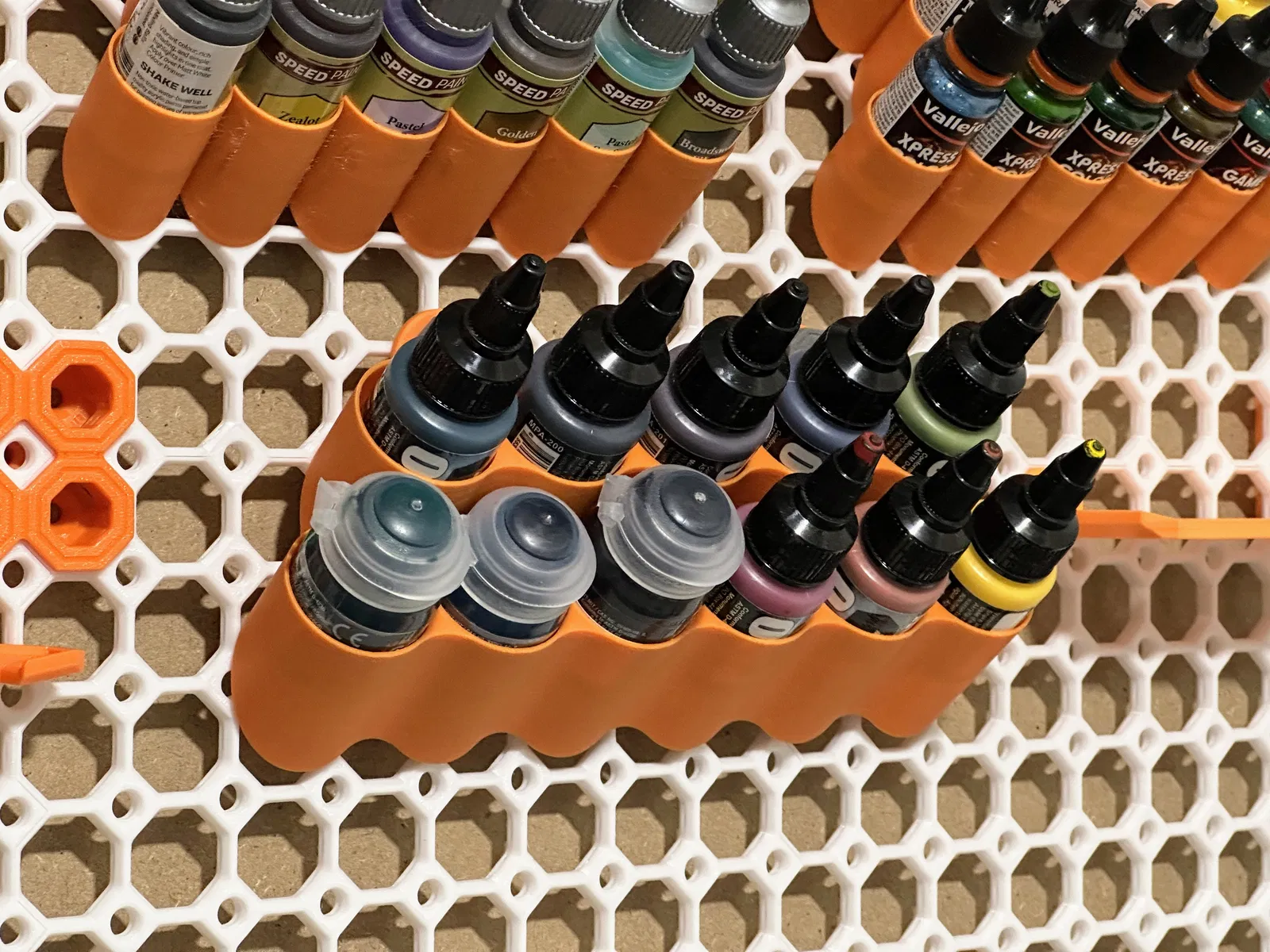 Cái đế đựng sơn do mình tự thiết kế riêng cho hệ thống Multiboard. Nó được thiết kế để gắn bằng hai con ốc T-bolt nhỏ và có sức chứa 22 lọ sơn hoặc chai sơn có đường kính tối đa 33mm, giống như của hãng Citadel, Pro Acryl và các hãng sơn mô hình khác. (Hình là mẫu đế 11 lọ.)