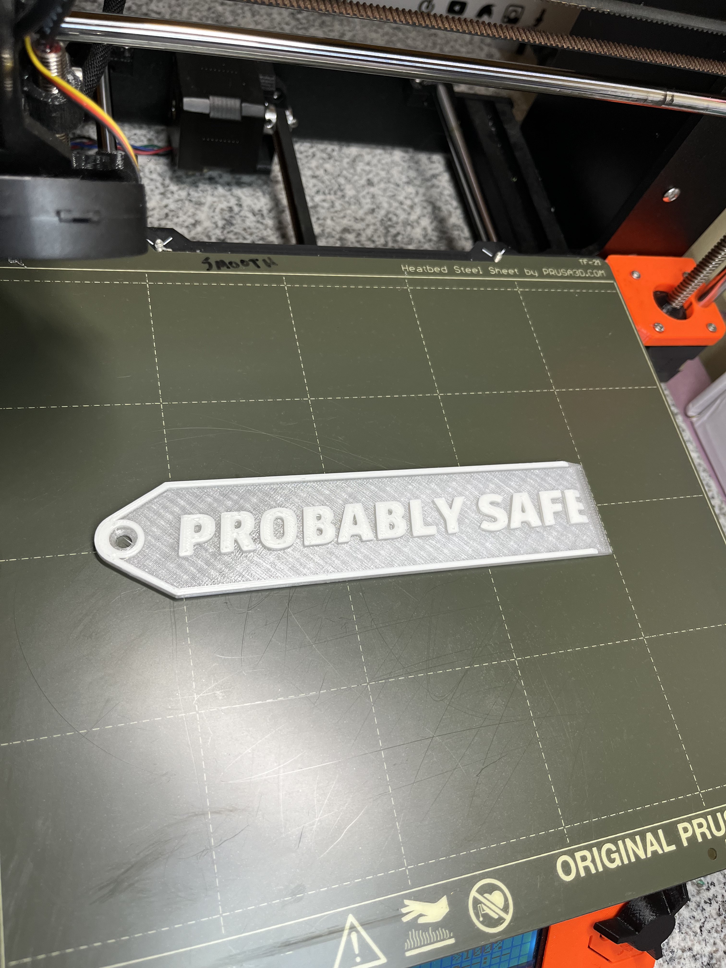 Cái móc khóa kiêm dụng cụ cạp khuôn in này có kích thước hơi lớn nhưng bạn có thể tùy chỉnh lại. In bằng PETG rất hiệu quả, giúp bảo vệ tay bạn khỏi mặt khuôn in nóng.
