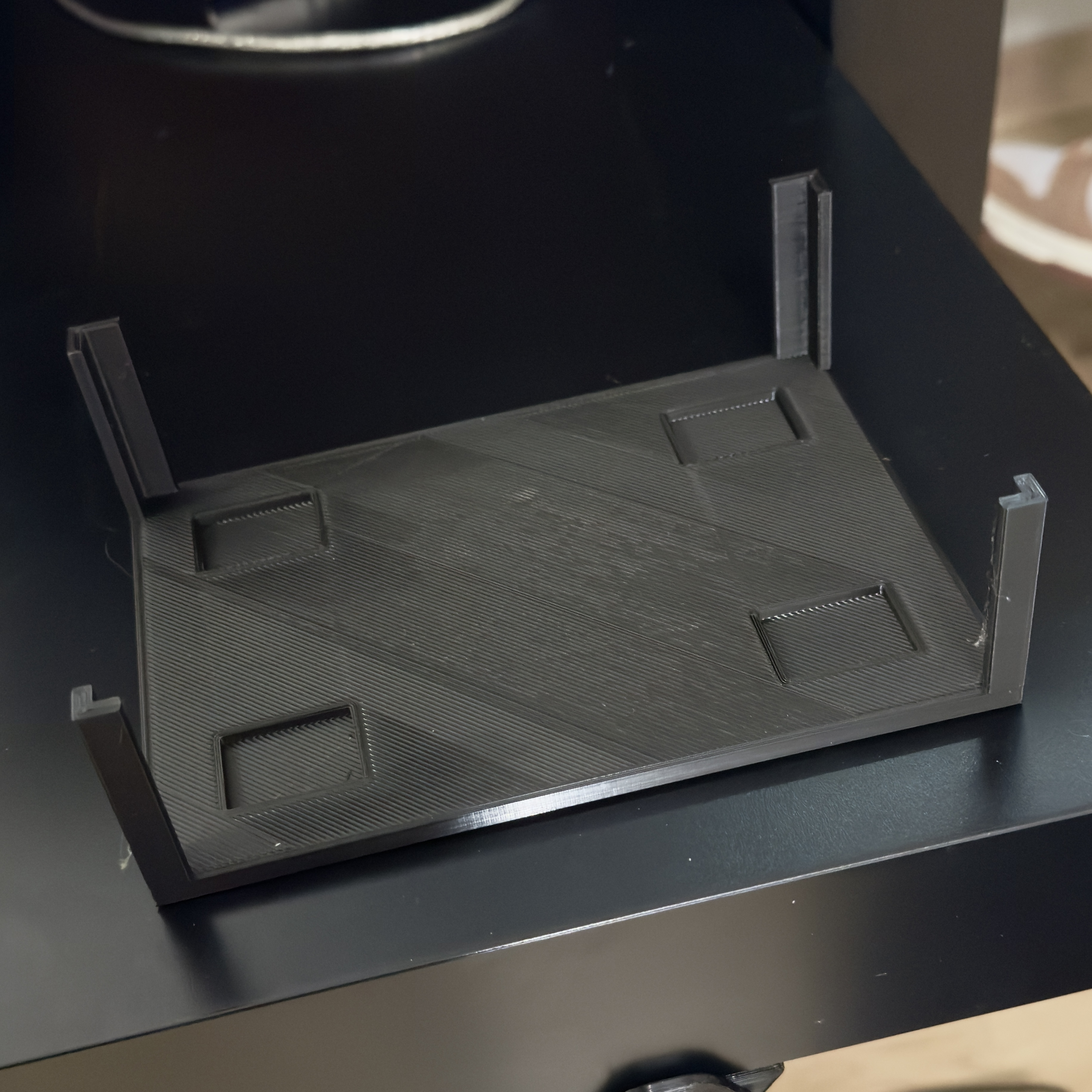 Giá đỡ cho card âm thanh Komplete Audio 2. Giúp cố định thiết bị, tránh bị xê dịch khi thao tác cắm rút dây. In bằng PLA, không cần support.