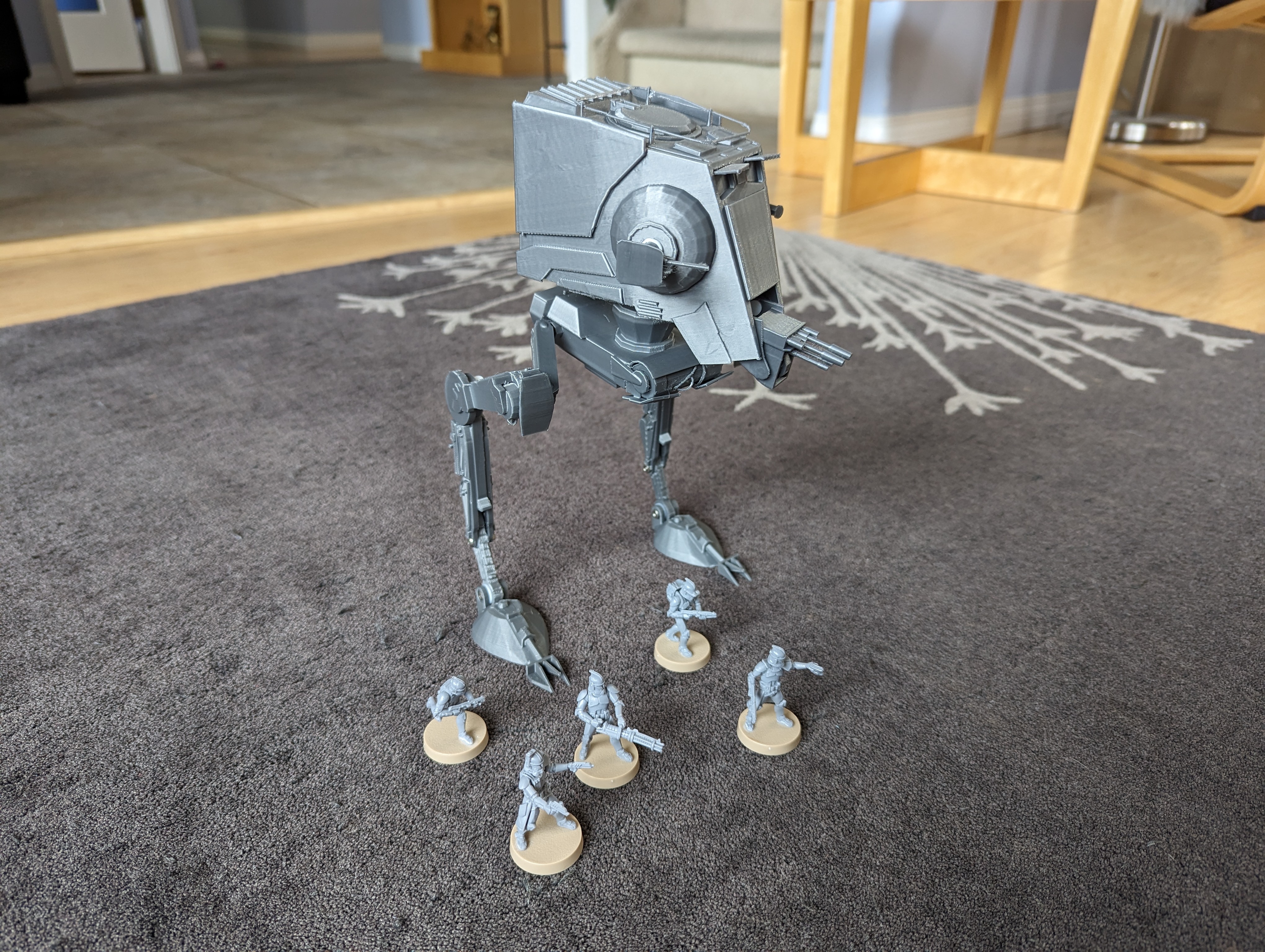 Mô hình ATST Star Wars 14 khớp này được thiết kế để có thể tạo dáng. Tác giả đã chỉnh sửa mô hình nguyên khối, thêm các khớp nối sử dụng bạc lót TPU và 4 ốc M3 để đảm bảo độ ổn định. Việc in ấn yêu cầu một chút kỹ năng nhưng mang lại kết quả tuyệt vời.