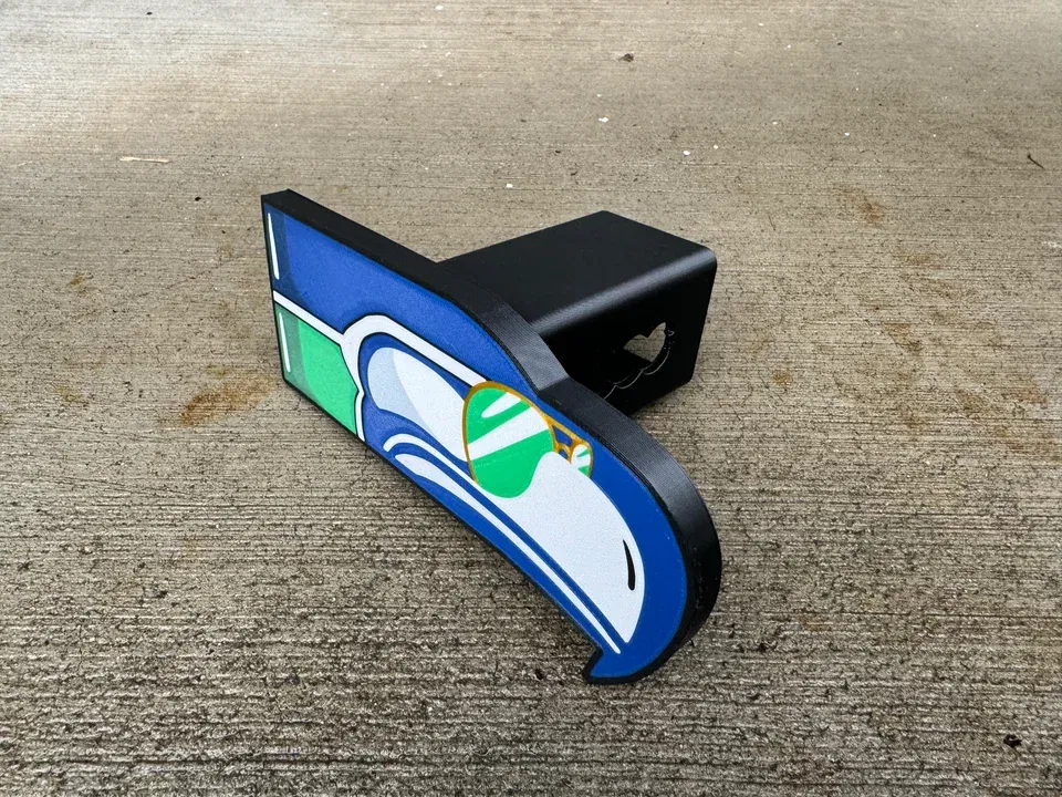 Cái "hitch cover" "SeaCool Hitch Cover" này được chế từ bản vẽ của Seahawks CornDoggyLOL, một nắp che khớp nối vui nhộn. Thiết kế này cần máy in đa vật liệu 4 màu và chỉ dành cho cá nhân.
