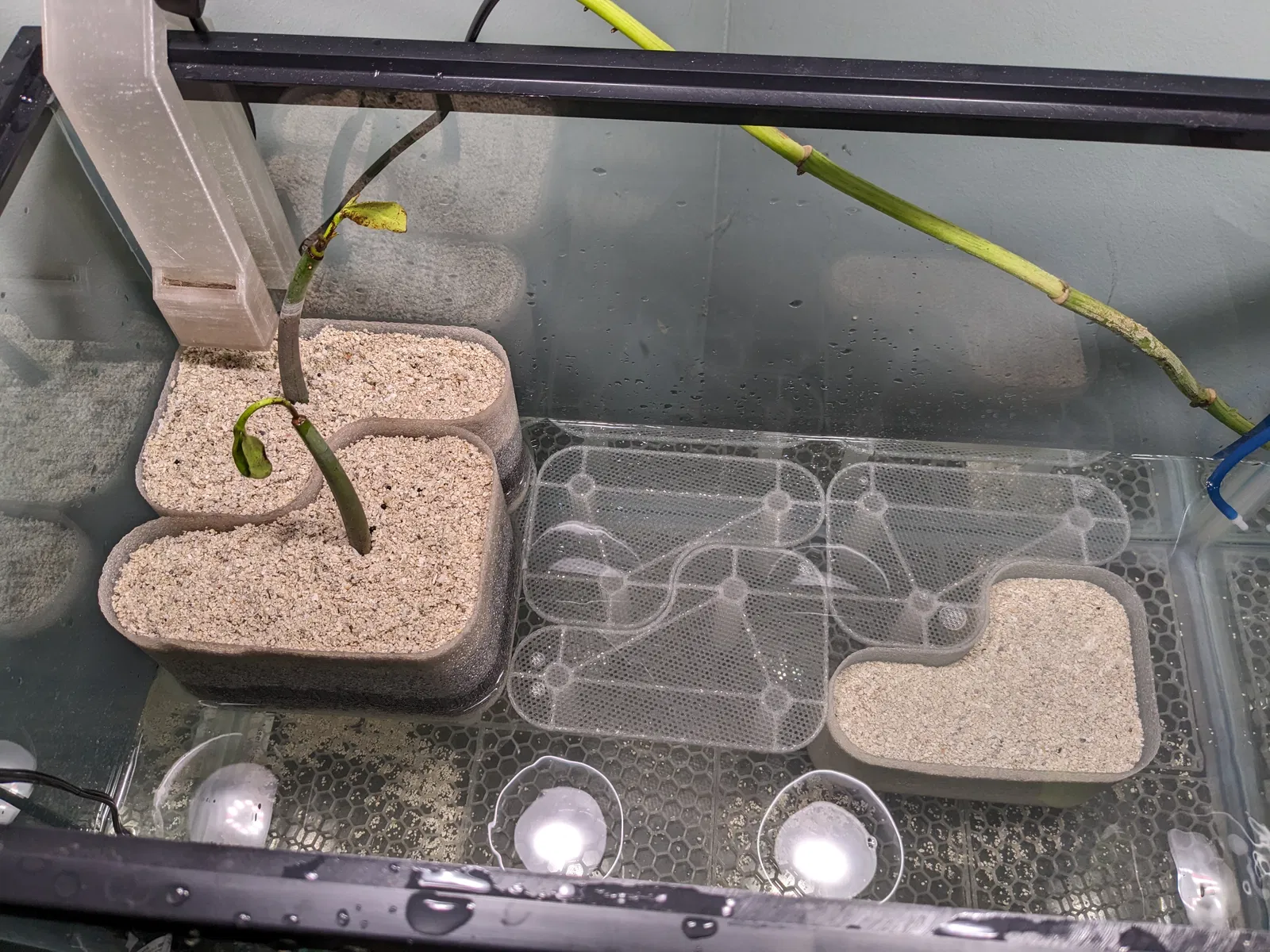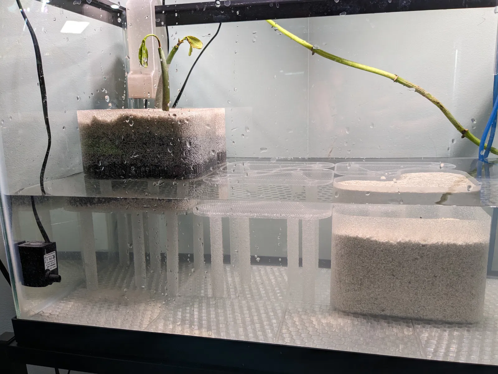 Mục đích cá nhân của tui khi dùng mấy cái này là để làm một cái bể thủy sinh thử nghiệm cho ba khía cạnh khác nhau của thú chơi mà tui chưa thử bao giờ và quyết định kết hợp lại trong một bể. Nó là một thiết lập nước lợ, có thủy triều được điều khiển bởi máy bơm hẹn giờ và có cây mắm. Tuy nhiên, chúng có thể được sử dụng cho một mục đích đơn giản hơn nhiều và in cắt xuống bất kỳ chiều cao nào phù hợp.