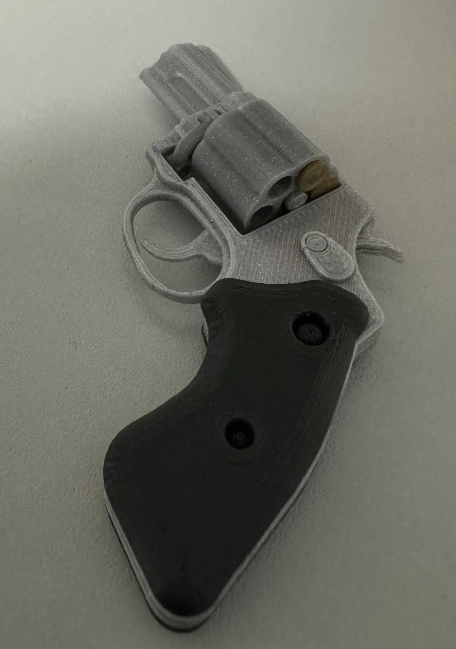 Đây là mô hình đồ chơi súng lục xoay (Revolver Fidget), một món đồ chơi nhỏ gọn, độc đáo, thích hợp để trưng bày hoặc làm đồ chơi giải trí. Mô hình này có thể in bằng nhựa PLA và được thiết kế để có thể cầm nắm, xoay vặn tạo cảm giác thư giãn.