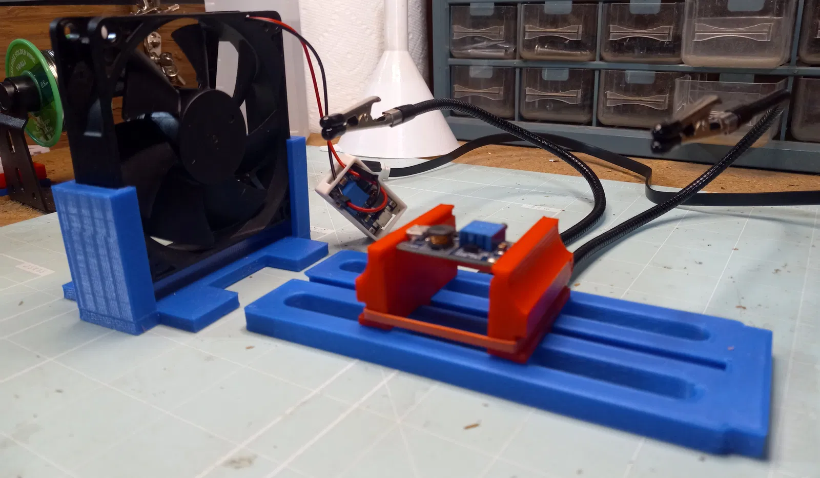 Bản tùy chỉnh của kềm giữ bo mạch PCB vise, kéo dài thêm kích thước và thêm vị trí gắn tay đỡ. Kèm theo đế quạt 80mm phù hợp cho các dự án điện tử. In bằng PLA với độ dày lớp 0.4mm.