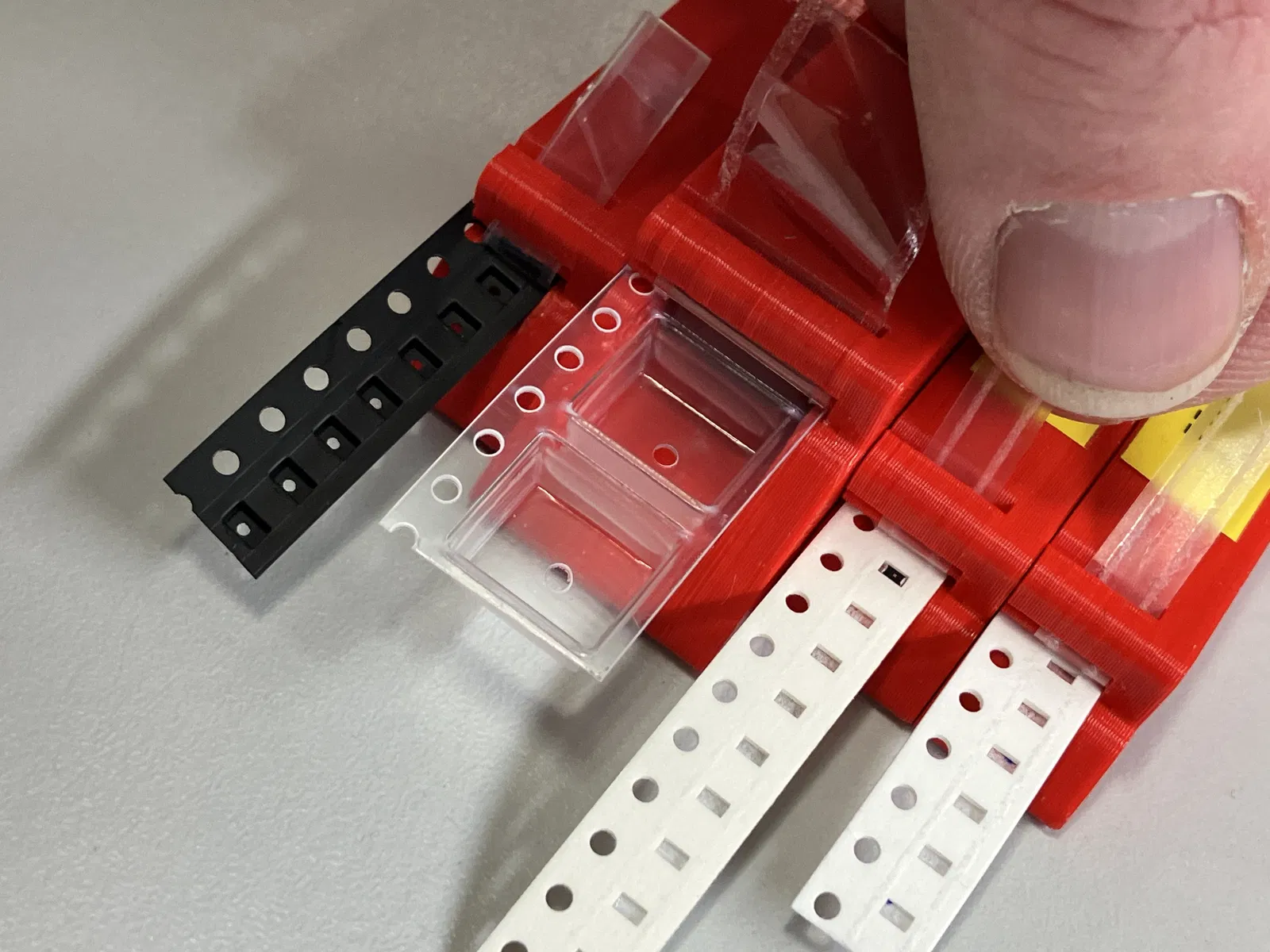 • Thiết kế tùy biến hoàn toàn, cho phép chỉnh sửa cho phù hợp với các loại băng keo có nhiều loại linh kiện khác nhau. Thiết kế này không chỉ vừa cho các bộ phận phẳng như điện trở và tụ điện SMD mà còn cho các thiết bị cồng kềnh hơn như công tắc, cuộn cảm, tụ điện phân, cầu chì và nhiều hơn nữa.