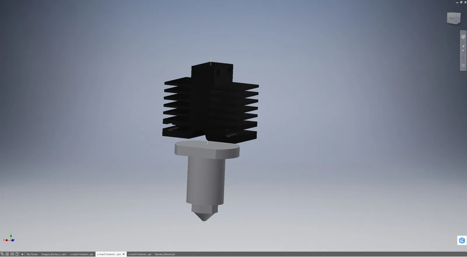 Tui phải làm vài chỉnh sửa nên cần bản vẽ 3D của đầu đốt cho cái Xmax3 của tui, nên tui vẽ nó bằng Inventor để có thể lắp ráp.