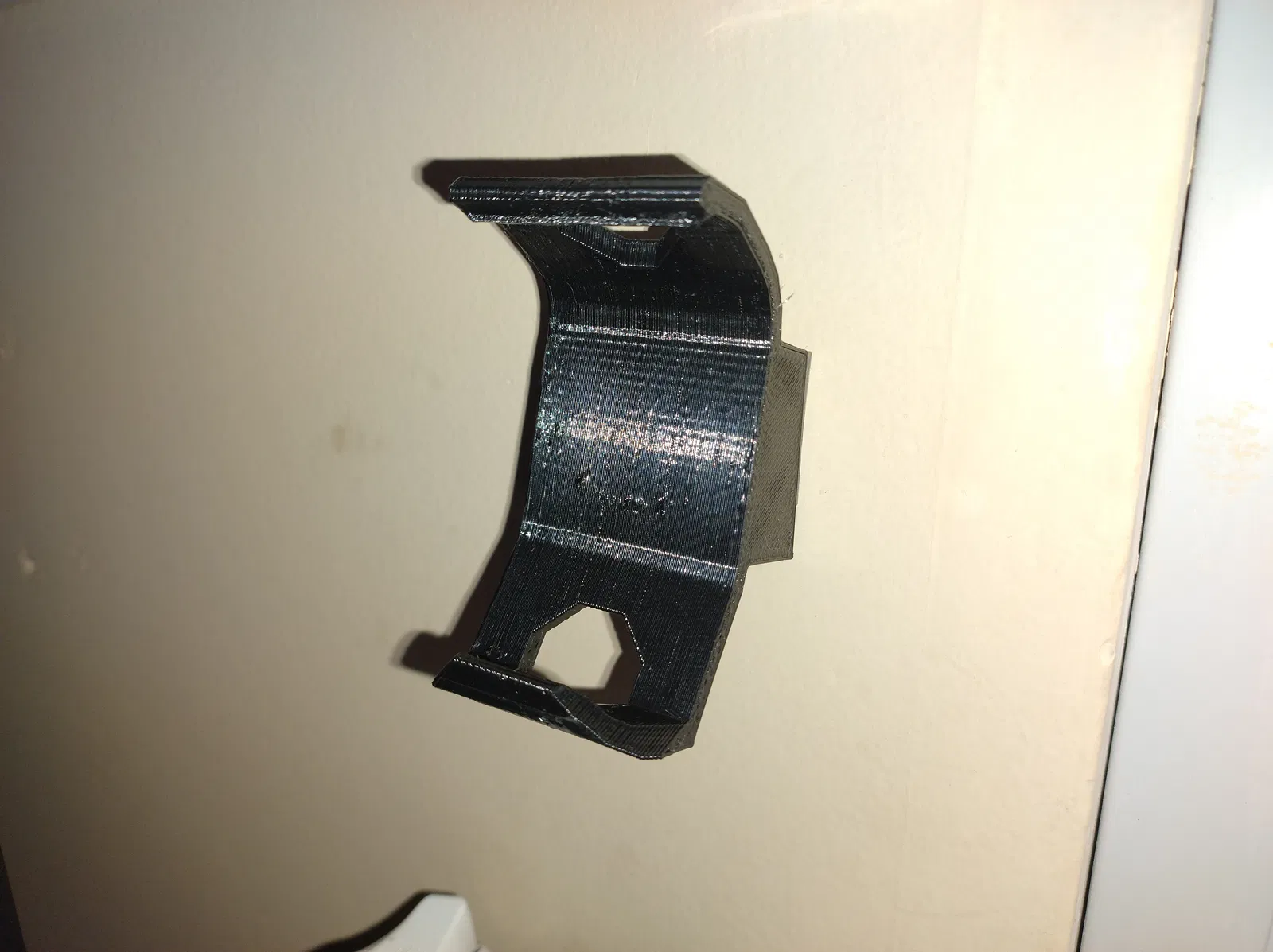 Tui cần chỗ treo tay cầm lên tường, mẫu gốc nhìn chắc chắn nên tui chế lại. Bản remix tui bỏ ngàm RAM, đùn hình chữ nhật nghiêng để tay cầm không chạm tường. Có cả mẫu cho Xbox One dù chưa test. Dựa trên ý này, tui vẽ thêm mẫu riêng cho tay cầm của tui. Dùng PETG, không raft, không hỗ trợ, độ phân giải 0.3, ruột 10%.
