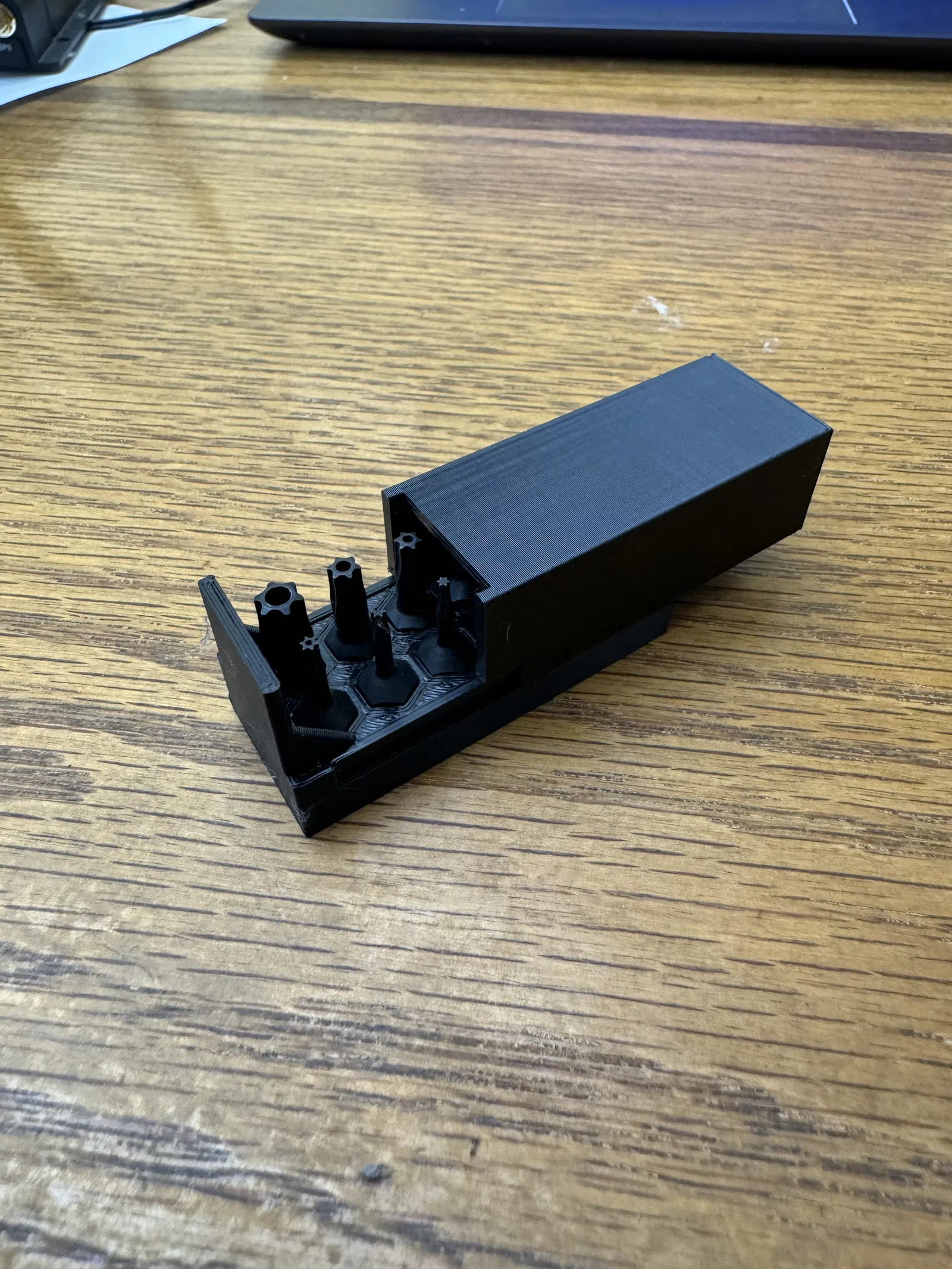 Tui muốn làm một cái hộp đựng mũi vặn vít sao cho nó gọn nhất có thể và in 3D hoàn toàn được luôn. Nó có thể chứa trọn bộ 12 mũi vặn. Tui làm cái này để trữ lâu dài mấy mũi ít xài. Cái hộp này cố tình làm cho khít để bỏ chung vô túi với cái tuốc nơ vít mà bạn vẫn lấy được đủ bộ mũi vặn nhé.