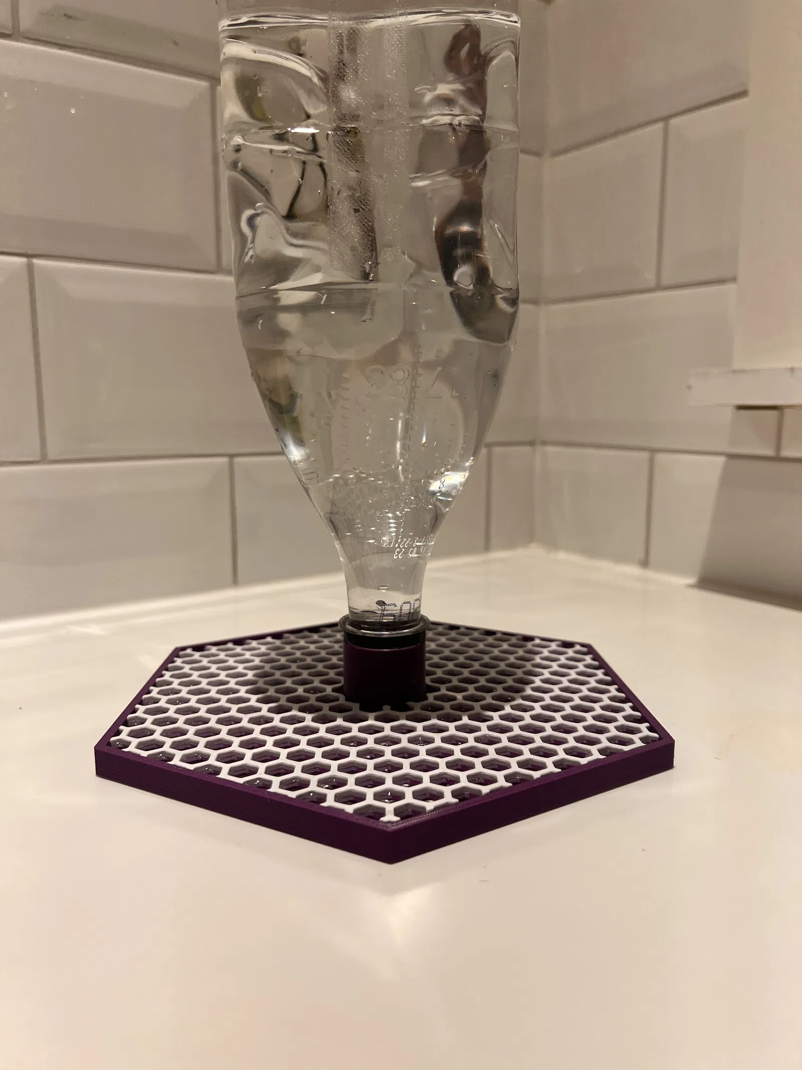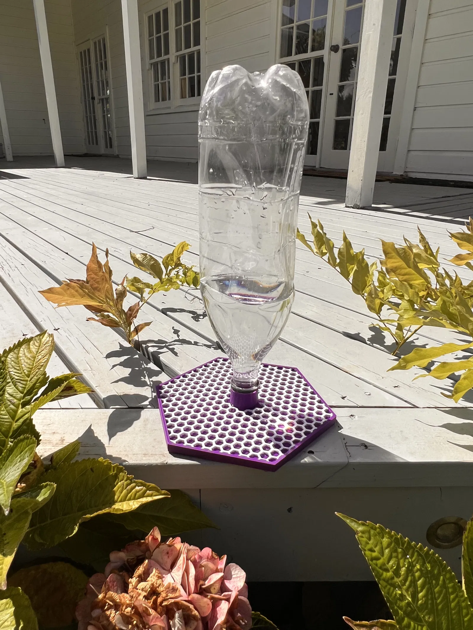 Tạo ra một máng ăn ong độc đáo cùng con trai, thiết kế này sử dụng chai PET cũ làm nguồn nước, giúp ong lấy lại năng lượng mà không bị chết đuối. Thiết kế này cũng dễ in và vệ sinh.