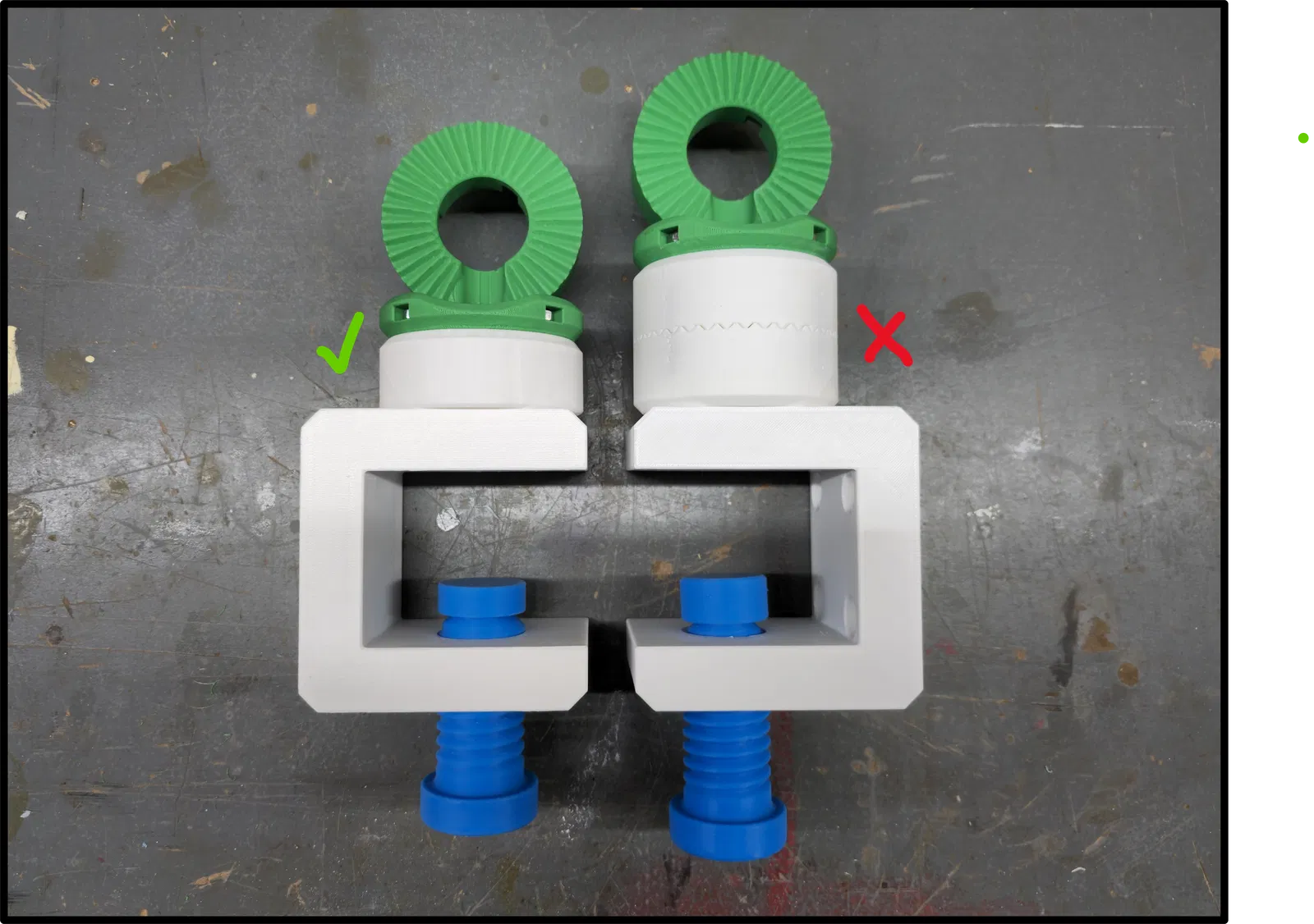 - Phiên bản còn lại dành cho người dùng muốn tương thích ngược với bộ phận "đế-có-lỗ" gốc. Nếu bạn đã in các đĩa đế rồi và chỉ muốn có một cái kẹp dày hơn, bạn có thể dùng cái này.