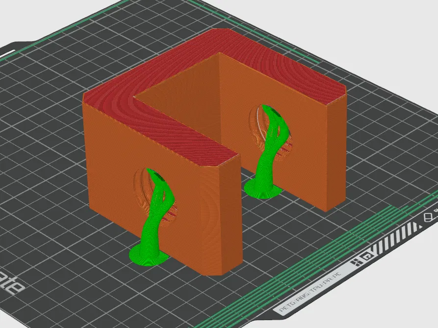 Tui khuyên bạn nên in kẹp với hỗ trợ dạng cây mỏng (thin tree supports) hoặc tương tự để phần ren ở chỗ nhô ra không bị sần sùi.