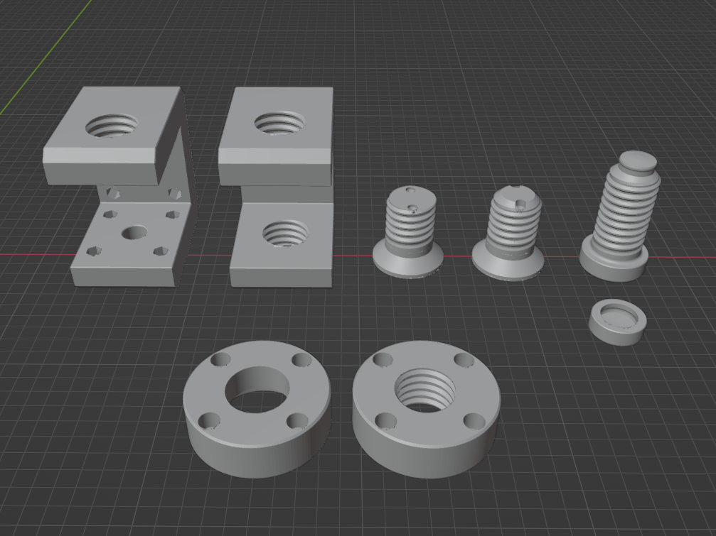 Các con vít đều có thông số ren lớn, và ít chỗ nhô ra giúp in sạch sẽ hơn ngay cả với PETG. Khi in bằng PLA+ hoặc PETG trên máy Bambu X1 Carbon của tui, các con vít vừa khít với ren âm với độ rơ rất ít. Máy in hoặc cài đặt của bạn có thể cho kết quả khác. Bôi chút sáp sẽ giúp chúng di chuyển mượt hơn.