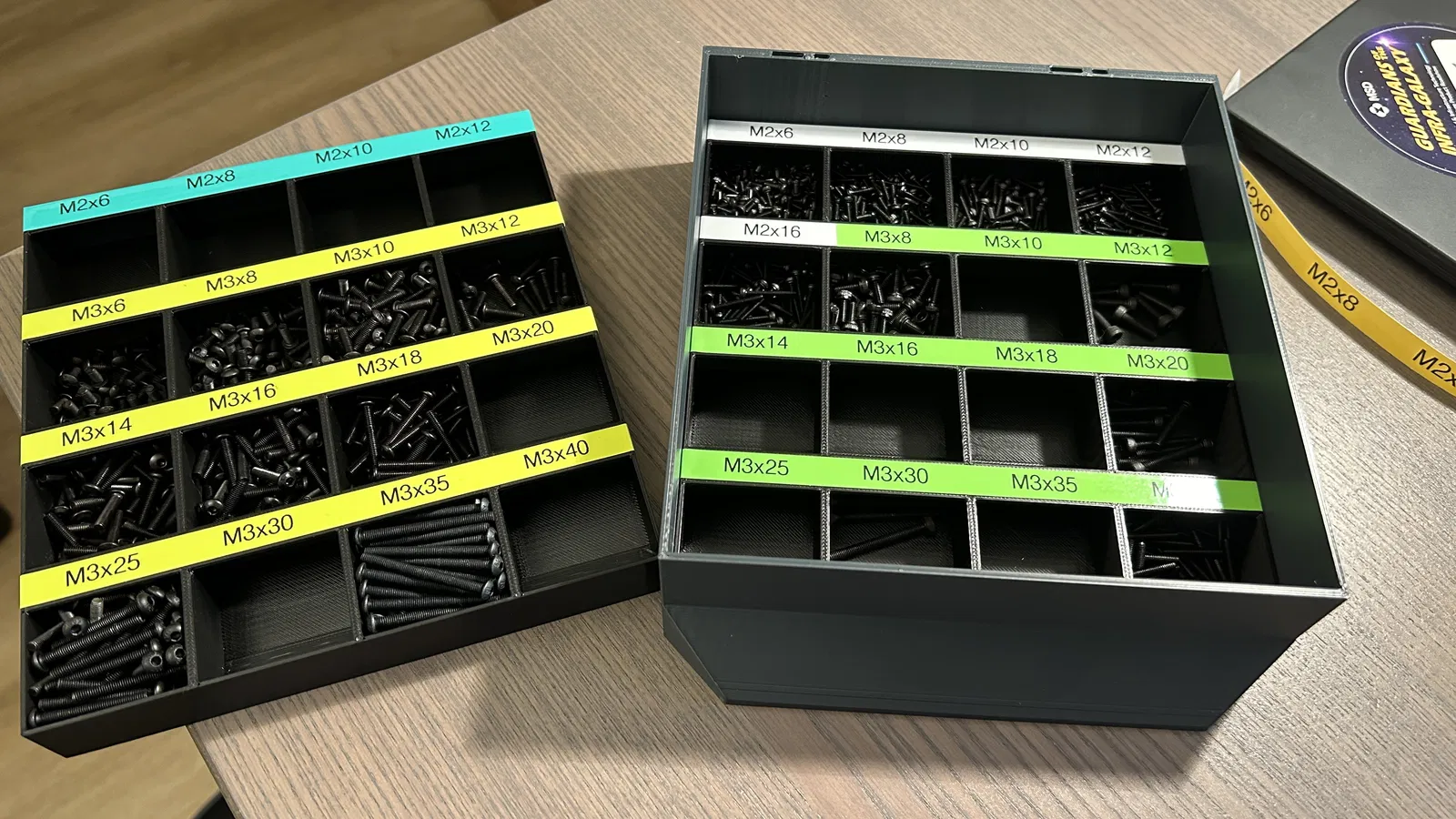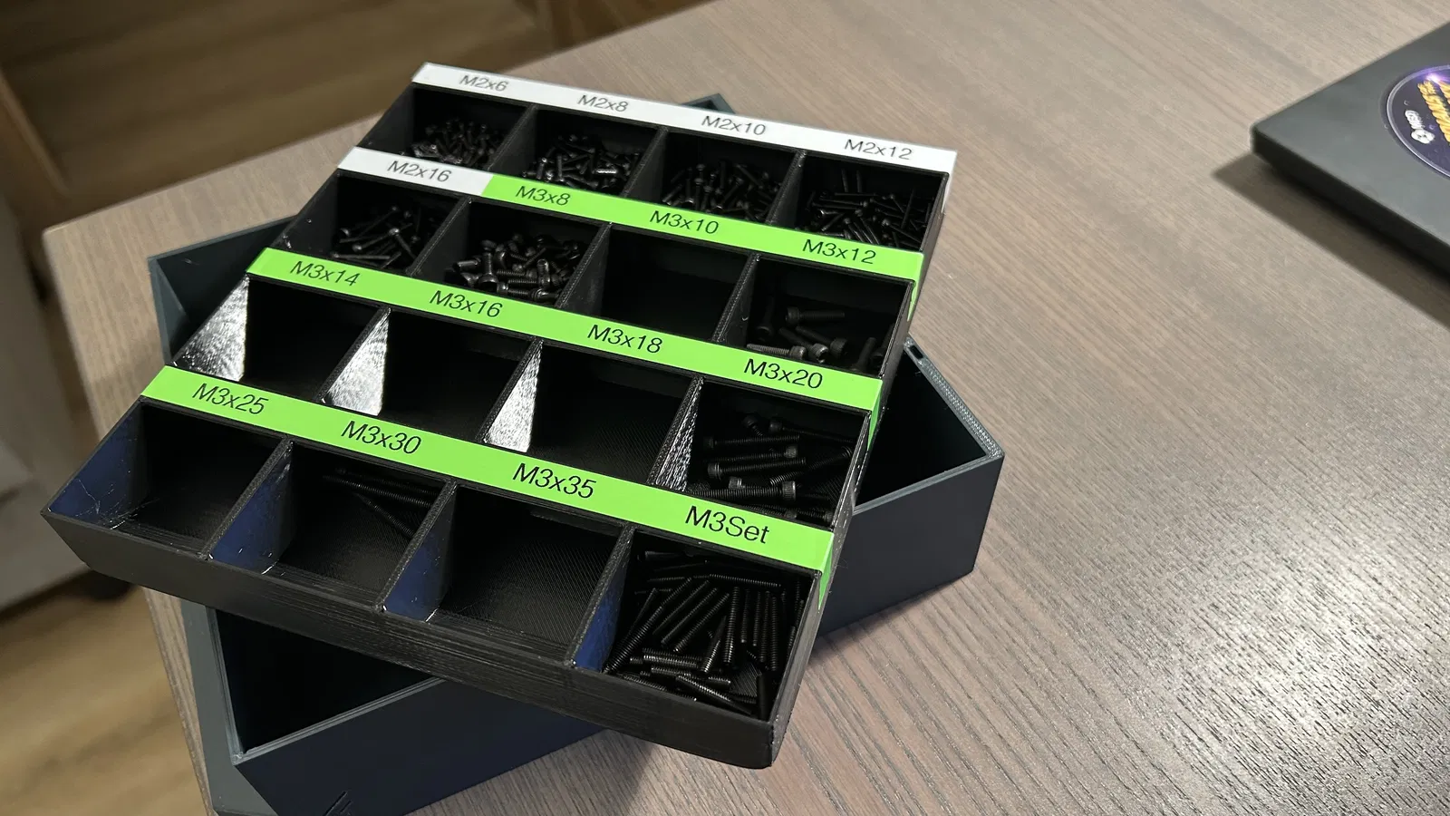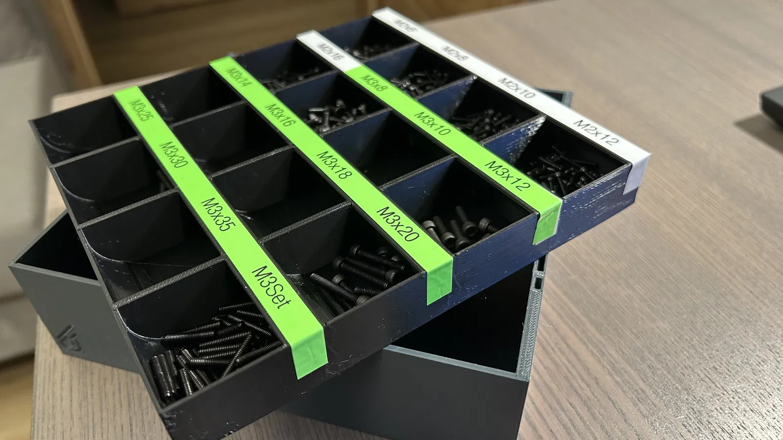 Khay đựng ốc vít thông minh, thiết kế đẹp mắt giúp lấy ốc dễ dàng. Phù hợp cho ngăn kéo Gen2 Modular Lack Enclosure hoặc dùng riêng lẻ. Có chỗ in nhãn, dễ in với PETG. Link tải ngăn kéo gốc kèm theo.