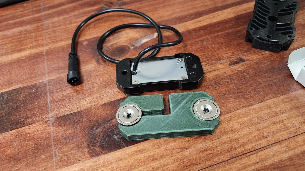 Khi tìm hiểu về đèn rock light, cái tên LUX lighting cứ hiện lên mãi. Một trong những điểm cộng chính là dễ lắp đặt (sử dụng nam châm để gắn). Vì tui cũng muốn có đèn nhưng không muốn tốn tiền như LUX, nên tui mua mấy cái đèn rock light rẻ hơn rồi in cái adapter này để gắn nam châm vô.