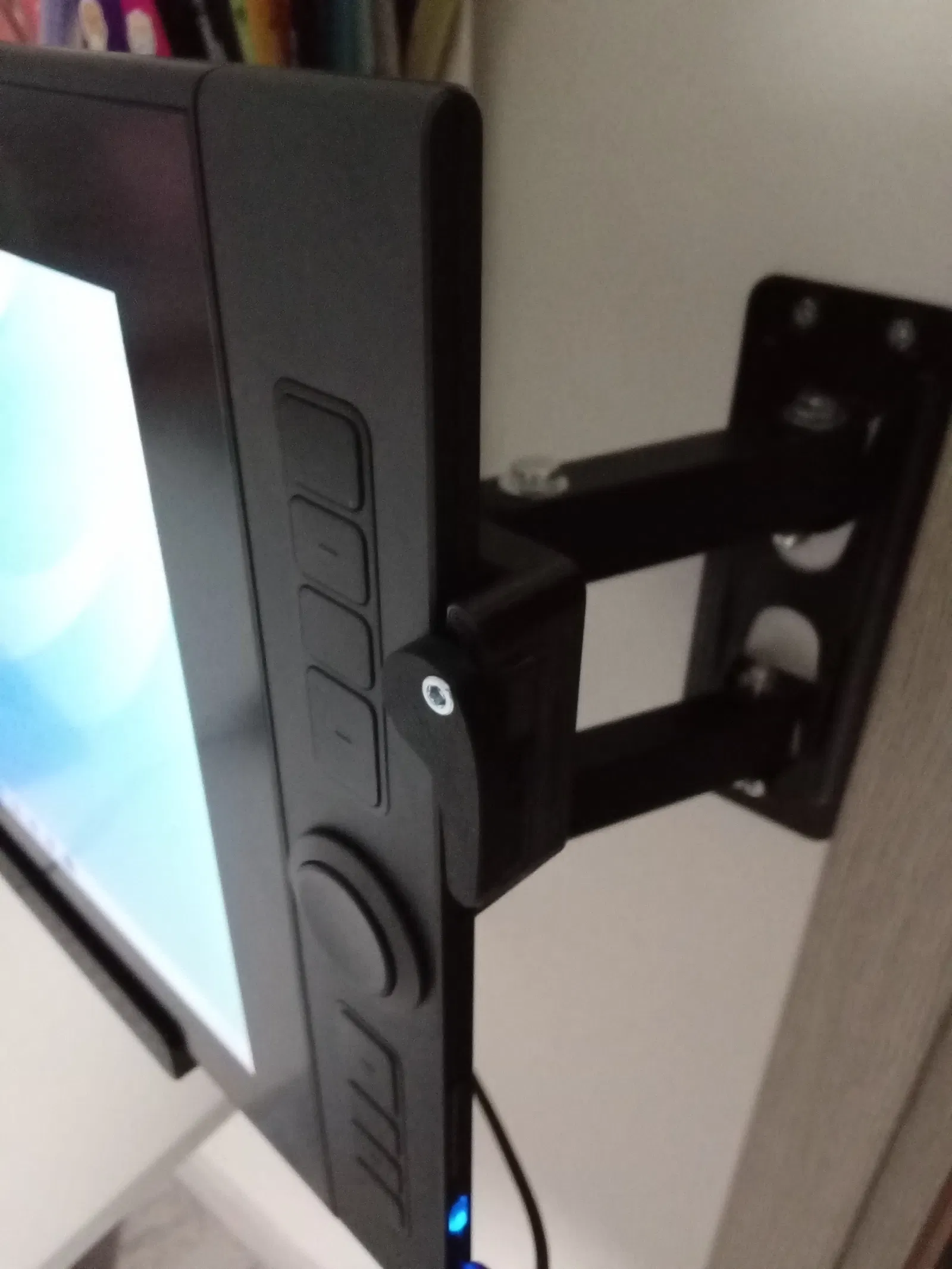 Mục đích chính là để có thể sử dụng bảng vẽ bút nói trên như một màn hình phụ khi không dùng để vẽ, nhưng vẫn có thể dễ dàng tháo nó ra khỏi giá đỡ VESA (100x15mm) khi cần thiết, bằng cách lật hai khóa bên lên khoảng 180 độ.