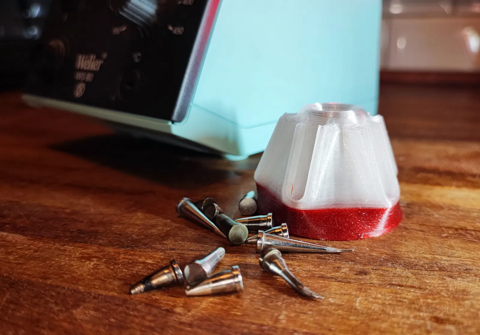 Hộp giúp truy cập nhanh các đầu hàn Weller LT. Bao gồm file Fusion360 đi kèm. Có thể chứa tới 15 đầu hàn, mỗi khe 3 đầu.