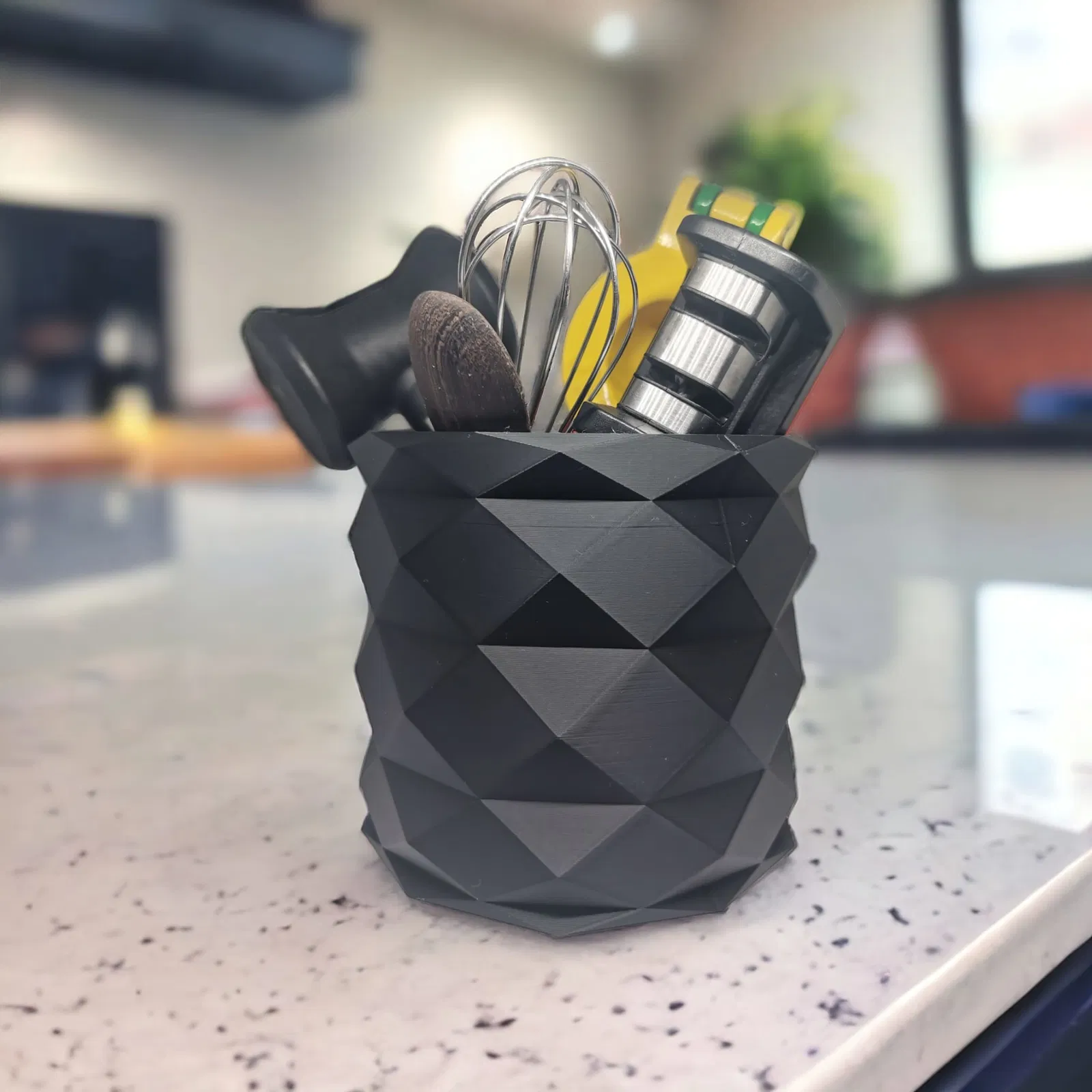 Nâng tầm phong cách bếp với khay cắm dao kéo hình học. Thiết kế hiện đại, tiết kiệm không gian, là điểm nhấn cho bếp. Giữ mọi dụng cụ nấu ăn thiết yếu gọn gàng, trong tầm tay, tăng thêm vẻ tinh tế cho căn bếp.