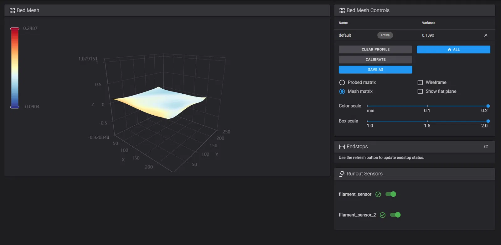 wget -O screws_tilt_adjust.py "https://raw.githubusercontent.com/CrealityOfficial/K1_Series_Klipper/main/klippy/extras/screws_tilt_adjust.py" Sau đó khởi động lại Klipper và thêm module chia sẻ ở trên vào printer.cfg, lưu và khởi động lại. Bây giờ, trong cả hai trường hợp, bạn sẽ có nút SCREWS_TILT_CALCULATE trong Fluidd ở mục Tools. Cứ chạy nó cho đến khi độ sai lệch của bạn không đáng kể.