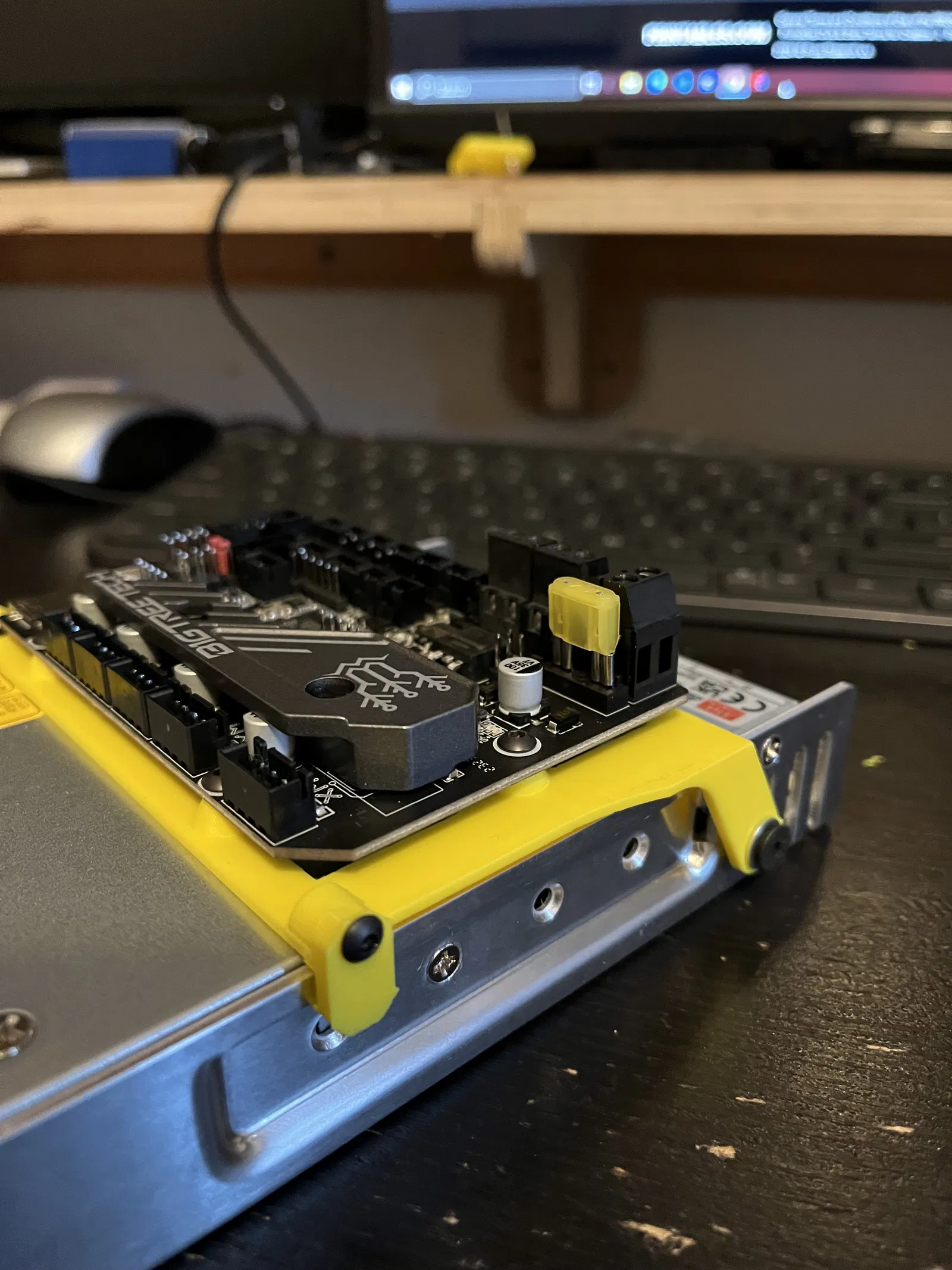 Tao đang nâng cấp cái máy in 3D cũ của tao nè, muốn tận dụng lại cái đế để chứa nguồn với bo mạch chủ luôn. Để làm được chuyện này, tao cần gắn cái bo mạch chủ lên trên cục nguồn.