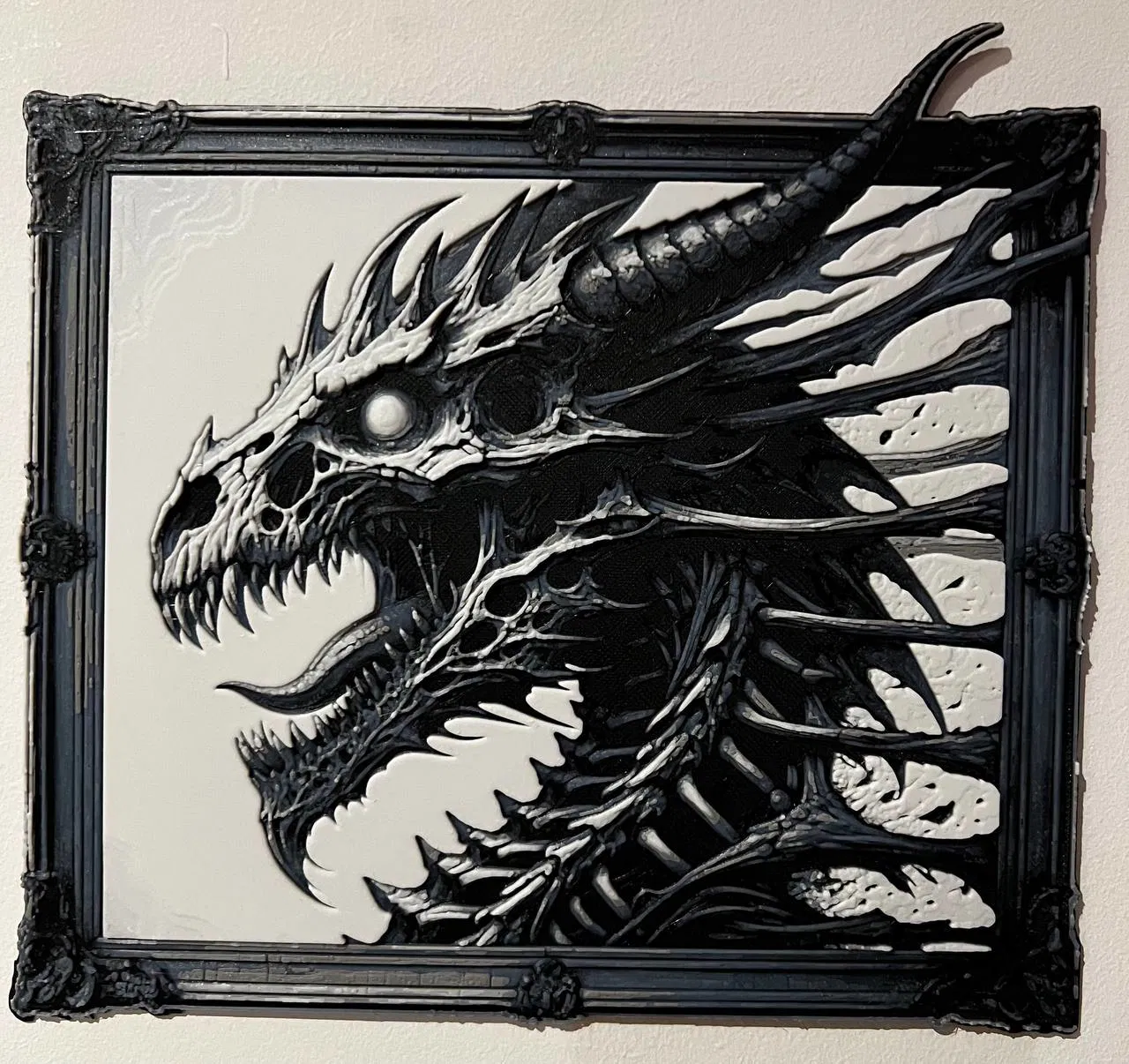 Tranh vẽ sợi "Undead Dragon", có vài điểm màu xanh xám để tạo sự khác biệt.
