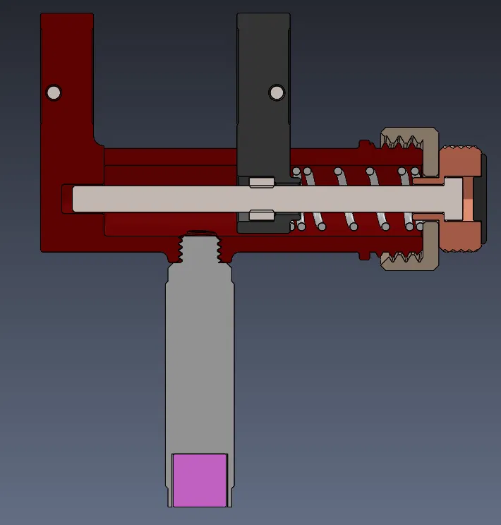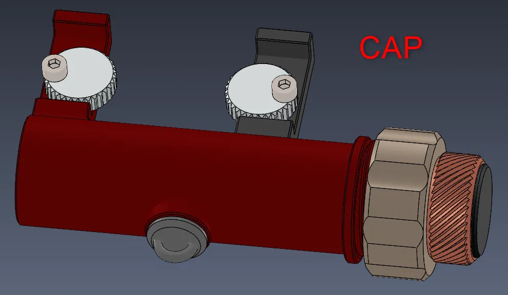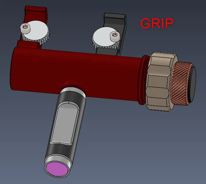 - Cấu hình nam châm, nơi BỘ TAY CẦM được lắp vào lỗ M8 của thân BỆ. Bạn có thể dán một nam châm d10x10 vào một đầu của BỘ TAY CẦM. Với cấu hình này, bạn có thể gắn công cụ lên bề mặt kim loại có từ tính hoặc kẹp nó vào ê tô trong khi hàn. Nếu bạn không sử dụng BỘ TAY CẦM, bạn có thể đơn giản bịt lỗ trong BỆ bằng NẮP 2.