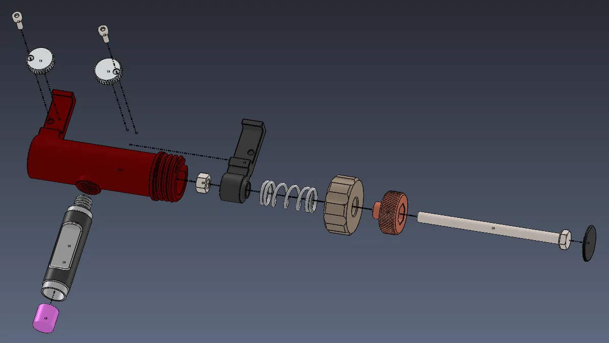 1 x BỆ ren / BỆ đơn giản 1 x CÁNH TAY 2 x BÁNH XE 1 x NẮP 1 x NÚT 1 x NẮP 1 1 x BỘ TAY CẦM (tùy chọn) 1 x NẮP 2 (tùy chọn) 1 x đai ốc M5 1 x bu lông đầu lục giác M5 dài tối đa 70mm 2 x vít đầu ổ cắm M2.5x8 1 x lò xo 12x1x55 (nhưng bạn có thể sử dụng lò xo có kích thước khác nếu nó vừa) 1 x Nam châm 10x10 (tùy chọn)