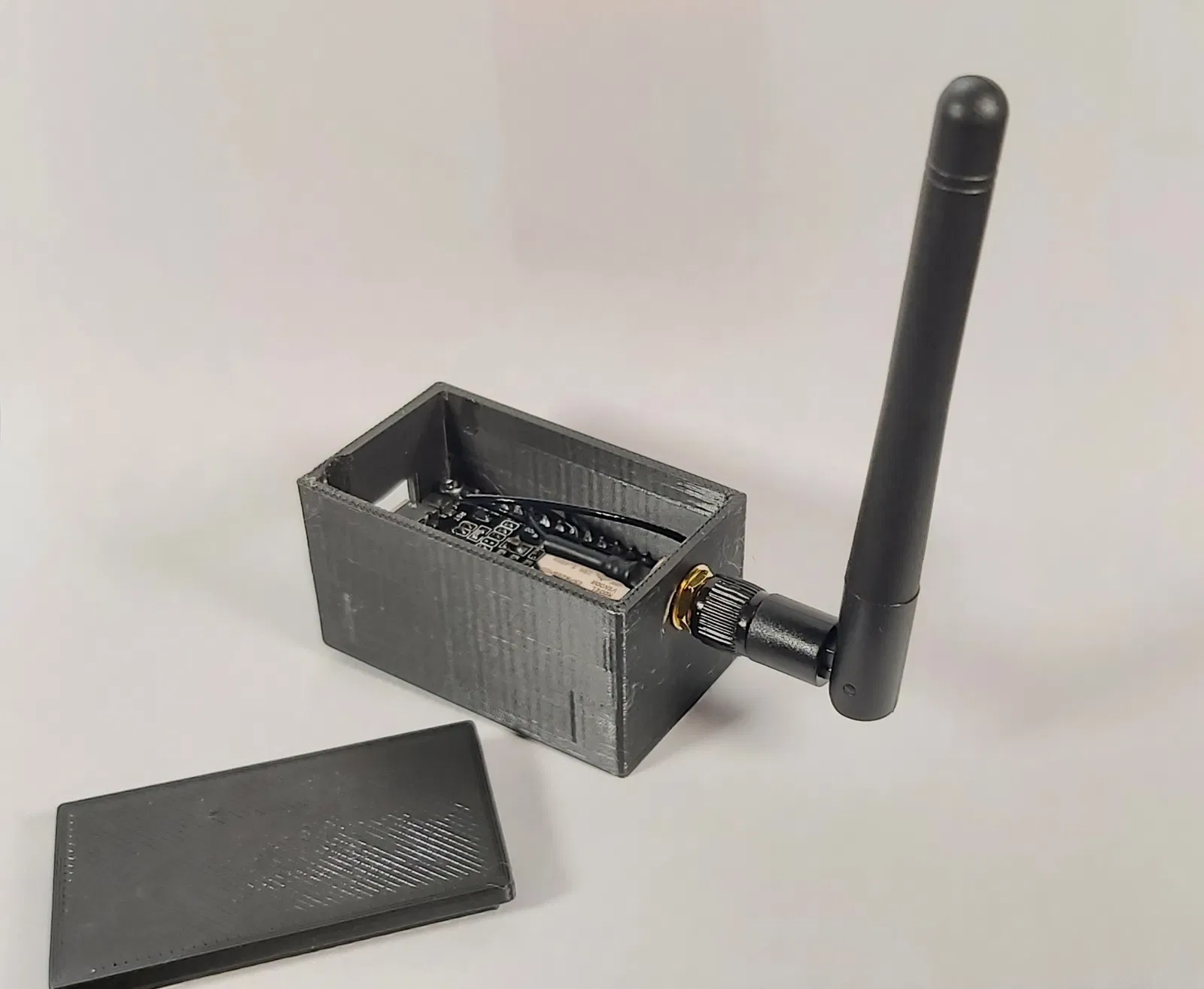 Hộp đựng Esp8266 có chỗ gắn anten wifi này sẽ giúp tăng cường phạm vi sóng wifi cho thiết bị của bạn. Cần chuẩn bị ốc, ec-nu M2 và anten wifi. Lưu ý khi in: dùng support cho phần anten, in nắp úp xuống và có thể cần dùng lực để đóng hộp.
