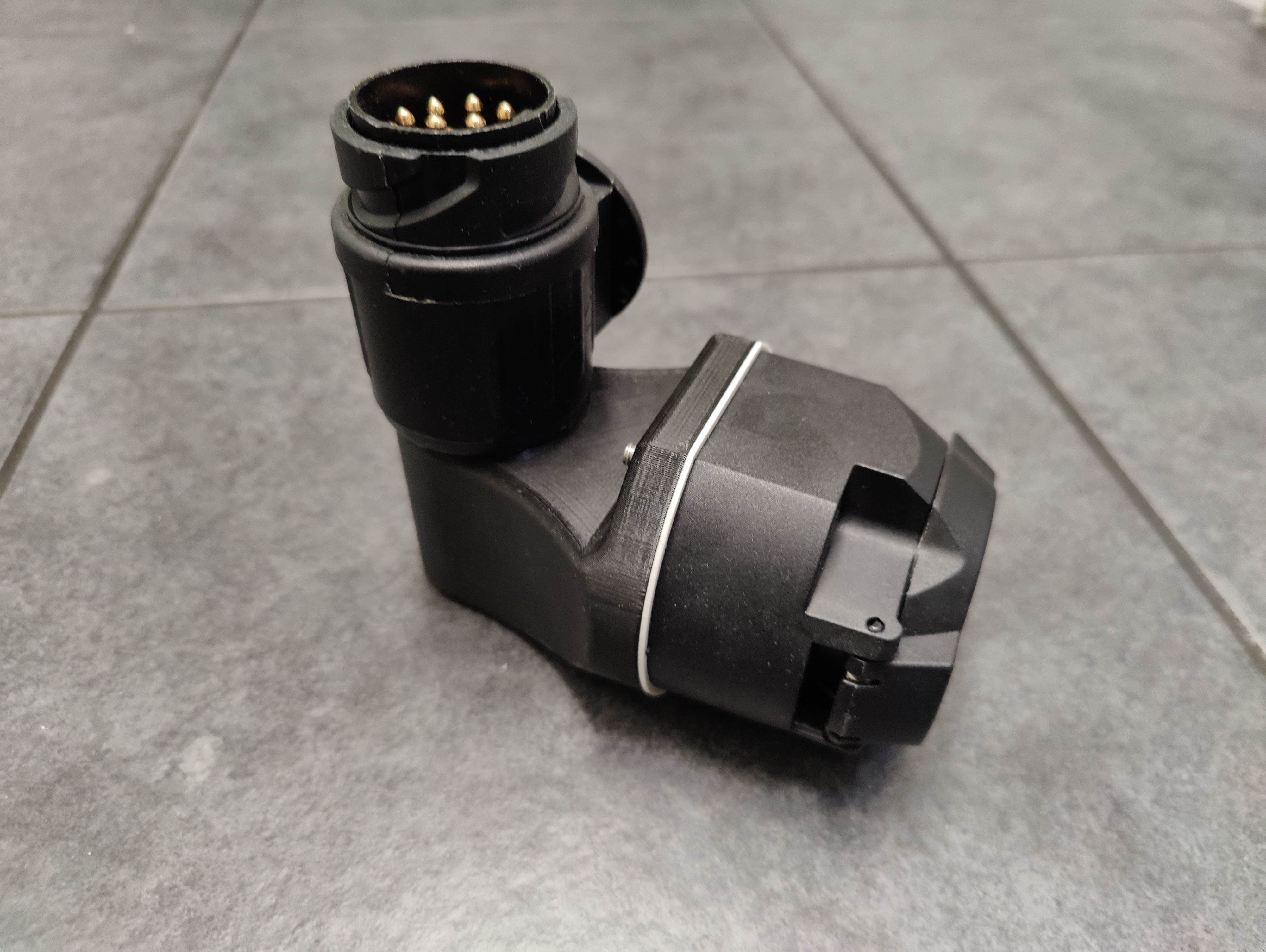 Adapter chếch cho trailer hitch, dành riêng cho Tesla Model 3. Phiên bản remix 2 này giải quyết vấn đề ren và hướng xoay khác nhau giữa các loại phích cắm, giúp việc lắp đặt dễ dàng và chính xác hơn.