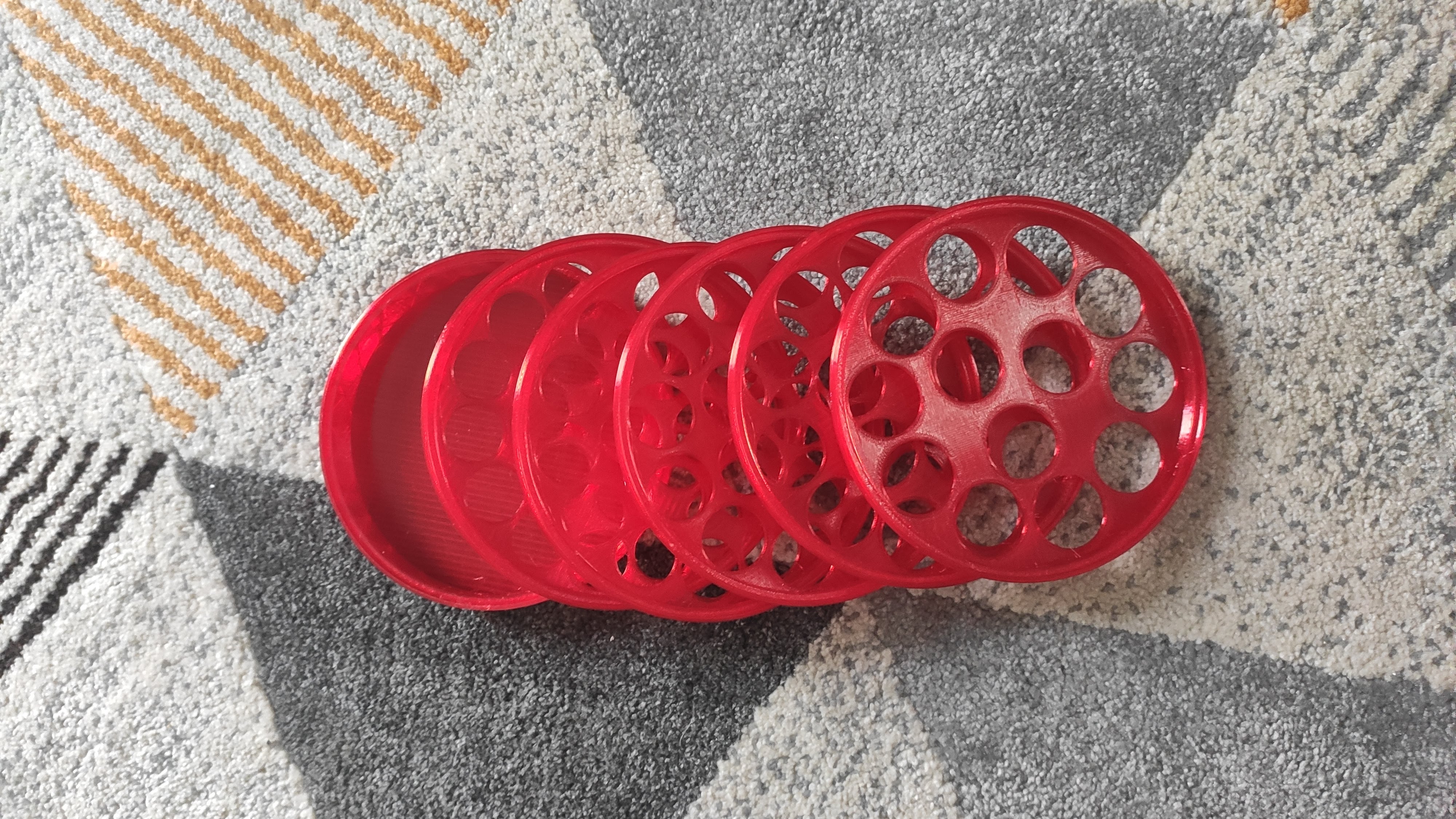 Mô hình cái phân loại tiền xu Séc này cho phép bạn sắp xếp các đồng xu 50Kč và 1Kč. Nó được in bằng vật liệu Pet-G với chiều cao lớp 0.2mm và độ dày vật liệu 15%, và có thể xếp chồng lên nhau. Mô hình này được in trên máy Prusa Mini. Tìm filament đã dùng tại đây.