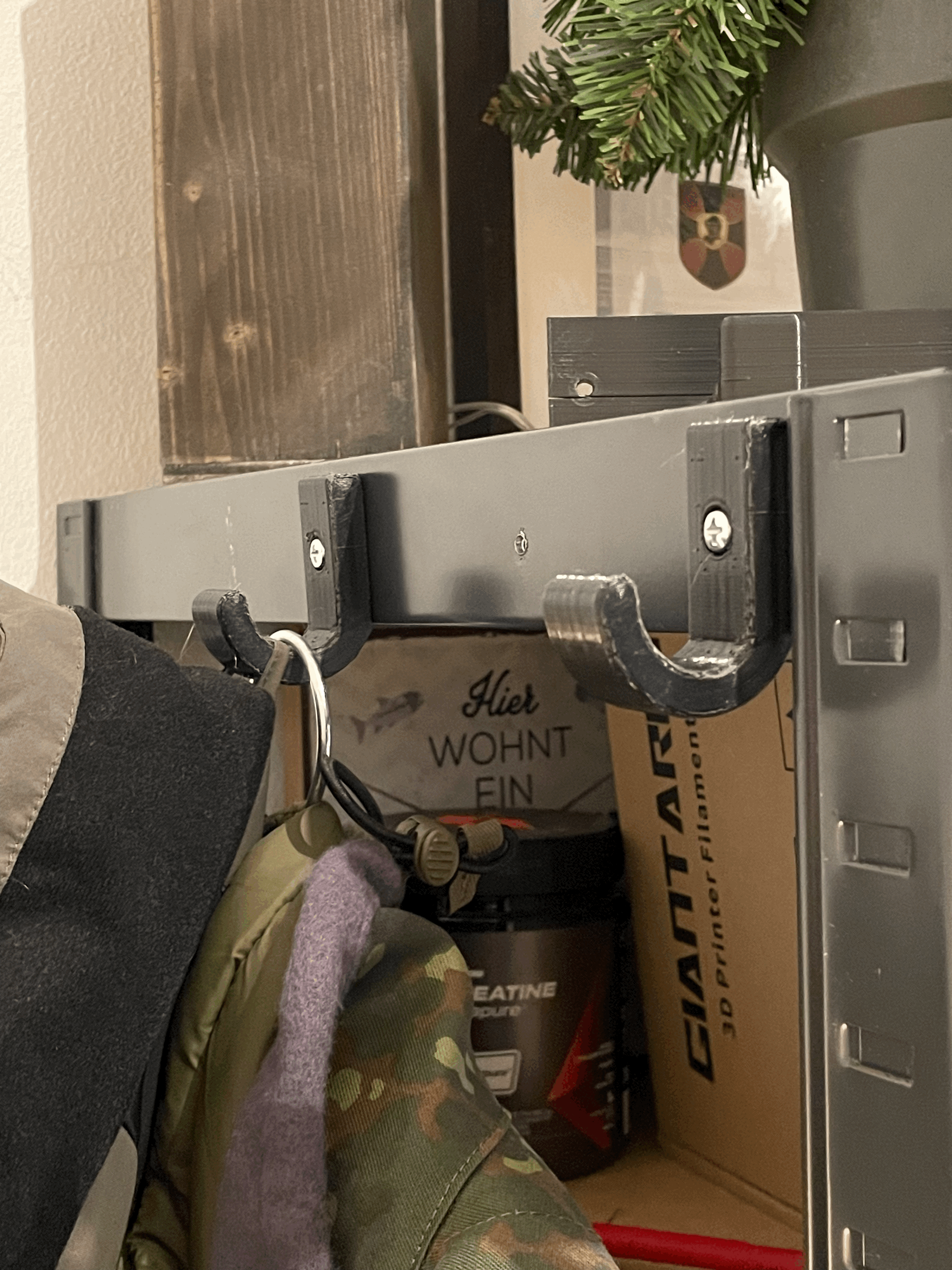 Tui đã thiết kế một cái móc để có thể treo quần áo nặng và ba lô lên kệ siêu chắc của tui.